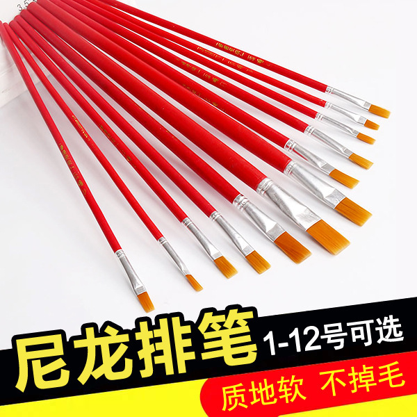 ガッシュ水彩レッドロッドシングルナイロン毛ブラシ絵画顔料ペン木製文具ブラシ