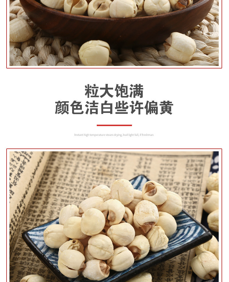 乾燥蓮の実、硫黄不使用の野生の蓮の実 500g、新鮮な皮をむいて芯を取り除いた白い蓮の実、天然卸売