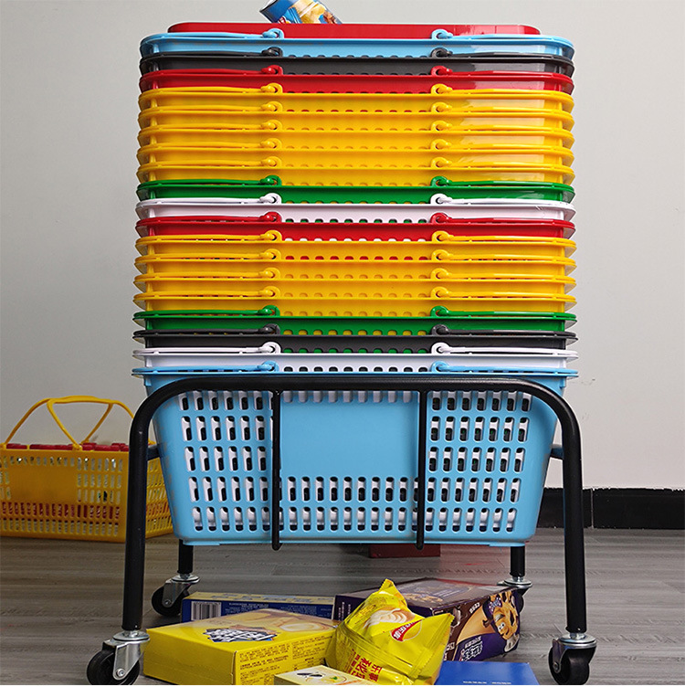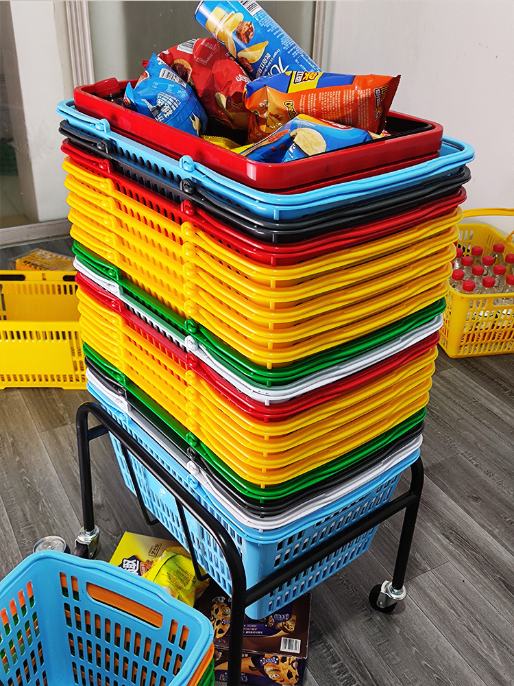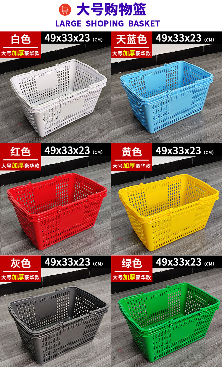 スーパーの買い物かごはプラスチックの手提げかごを厚くして野菜かごを買います。