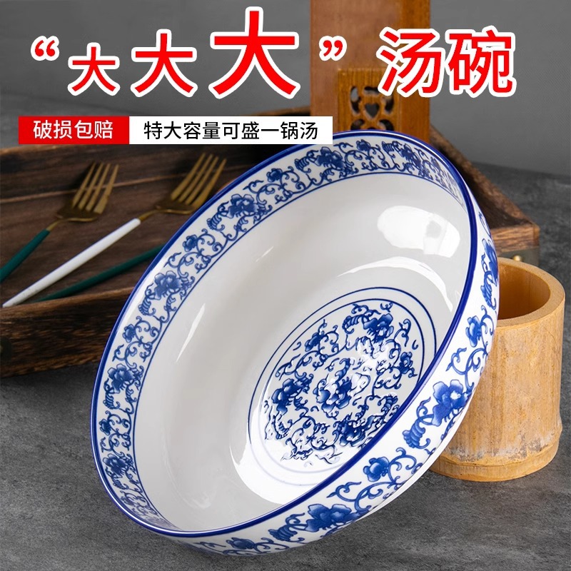 大きいスープの碗の家庭用の特大サイズの12インチのスープの鉢の酸っぱい魚の碗の大きいたらいの陶磁器の釉薬の下で色の青い花の磁器のスープのたらい
