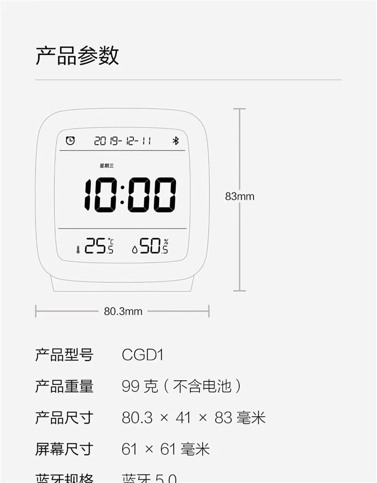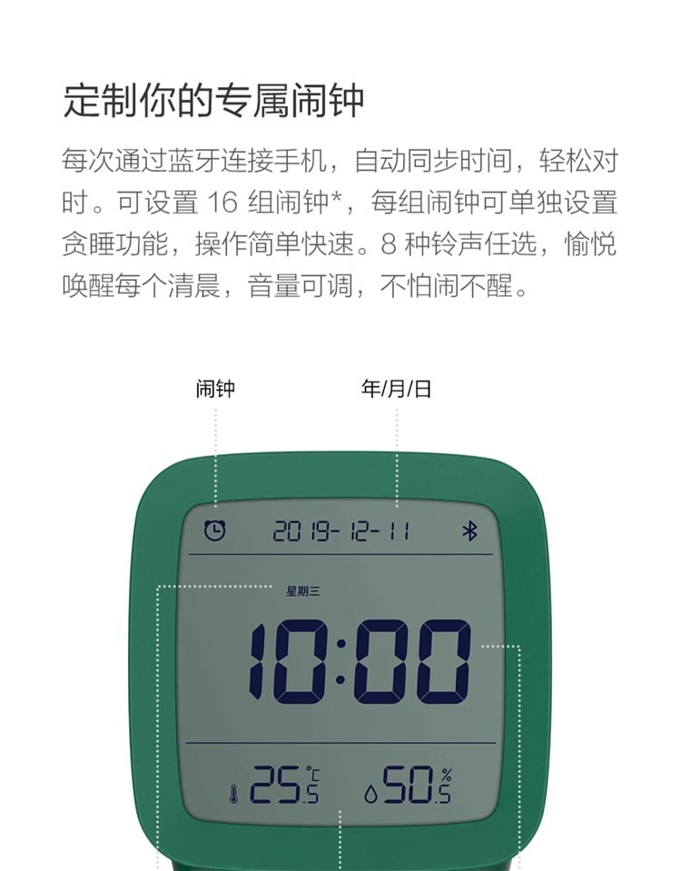 青萍bluetooth目覚まし時計学生専用起き子供電子知能多機能時計携帯電話聯米家APP