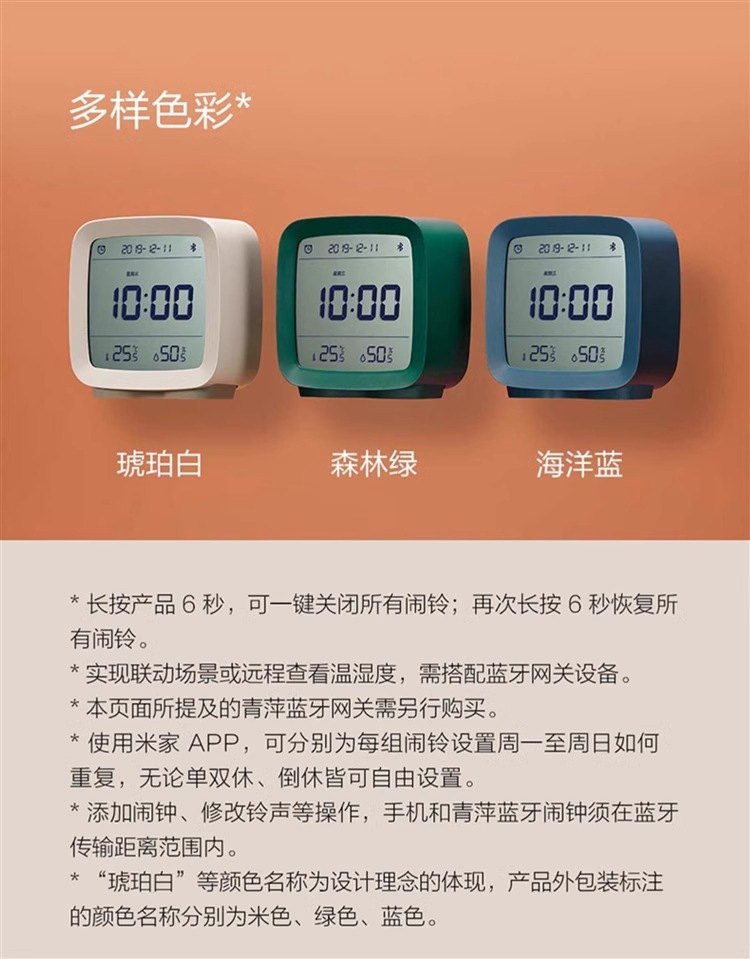 [グリーン] Qingping Bluetooth 目覚まし時計,[オフホワイト] Qingping Bluetooth 目覚まし時計,[ブルー] Qingping Bluetooth 目覚まし時計