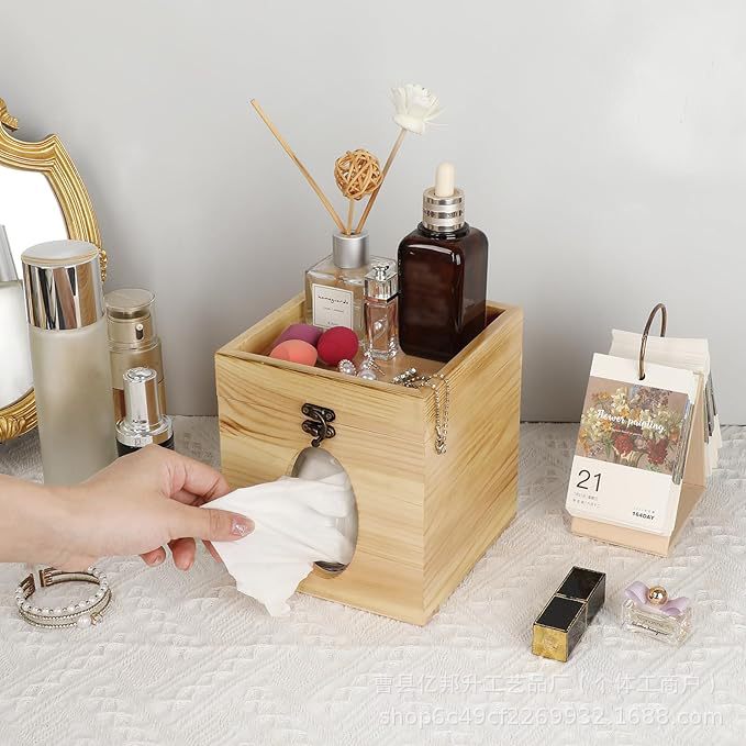 木製のティッシュ収納ボックス多機能デスクトップの香水の文房具は木の棚のトイレのホテルの家庭用の引き出しを並べます。