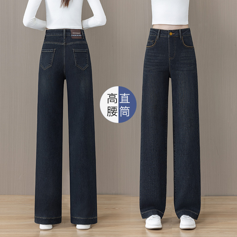 紺色のストレートジーンズの女性が爆発した2025年春の新型ズボンは今年は狭いバージョンのワイドパンツが流行した