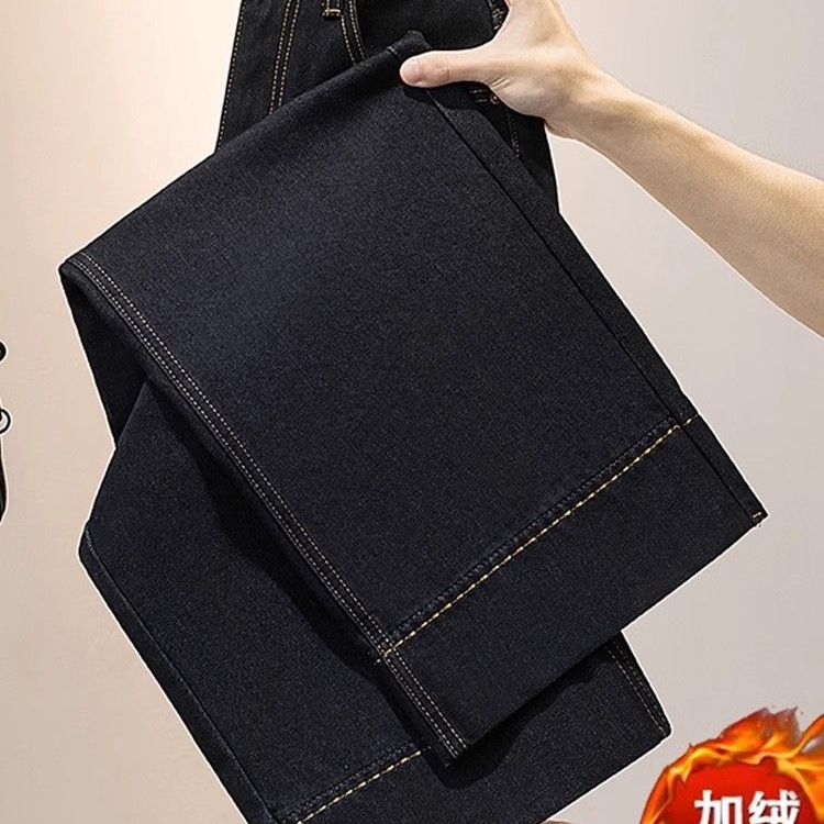 广州十三行高端加绒加厚牛仔裤女秋冬新款小个子推荐宽松直筒裤