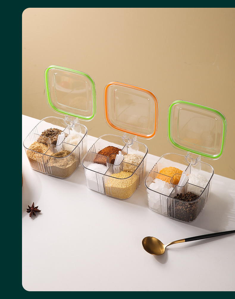 仕様 オリーブグリーン 1個 [大容量4室 - 調味料スプーン4本無料] 食品グレード,鮮やかなオレンジ 1 個 [大容量 4 コンパートメント - 無料の調味料スプーン 4 個] 食品グレード