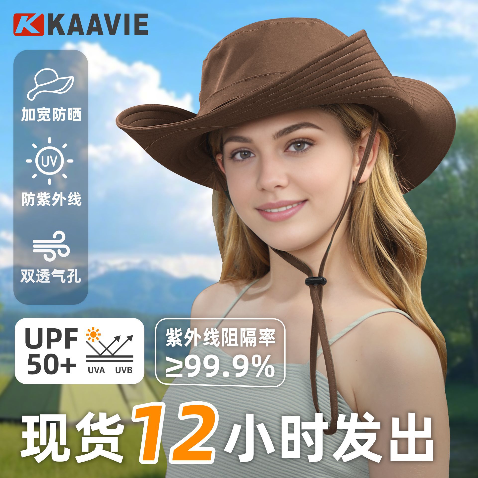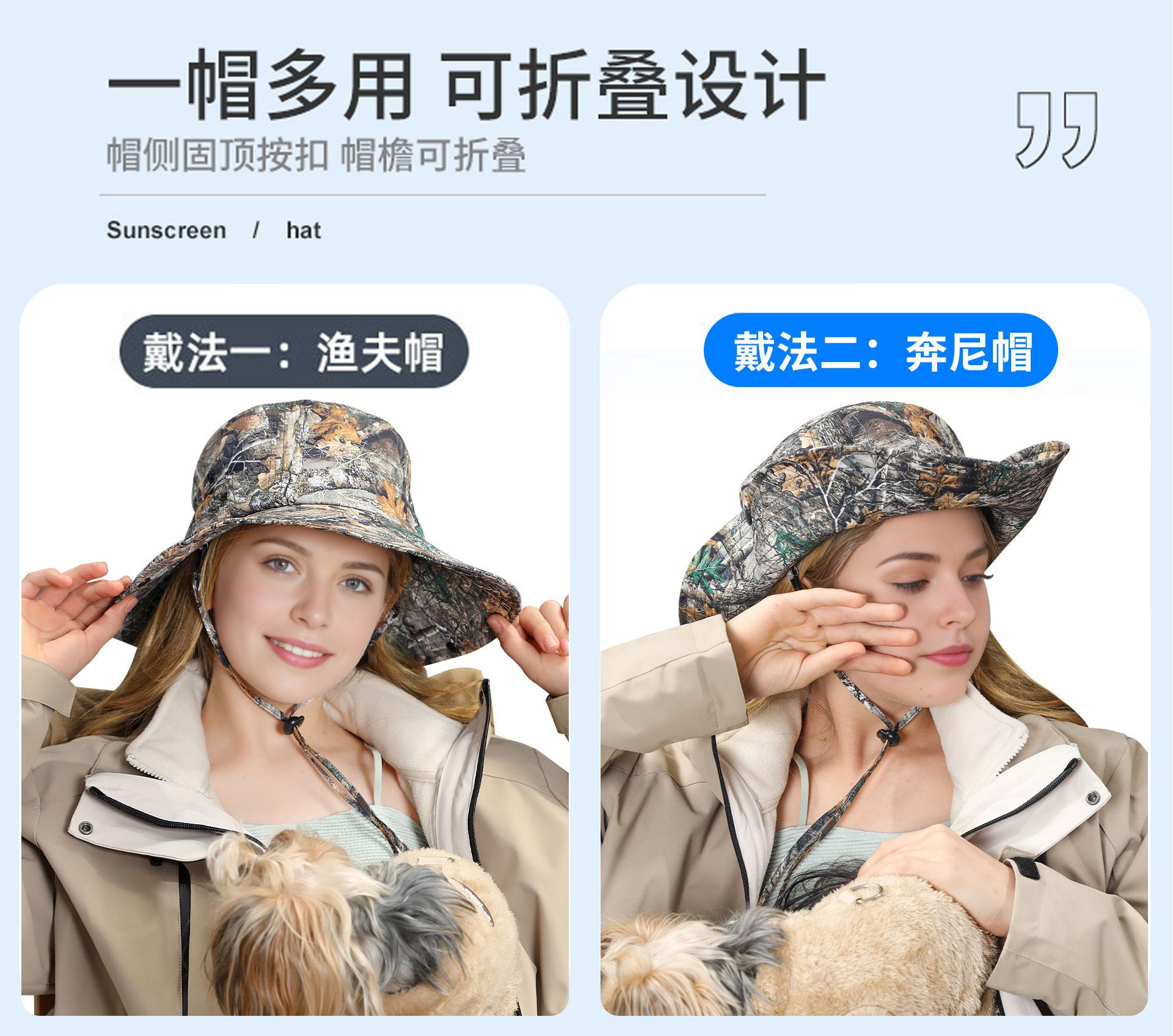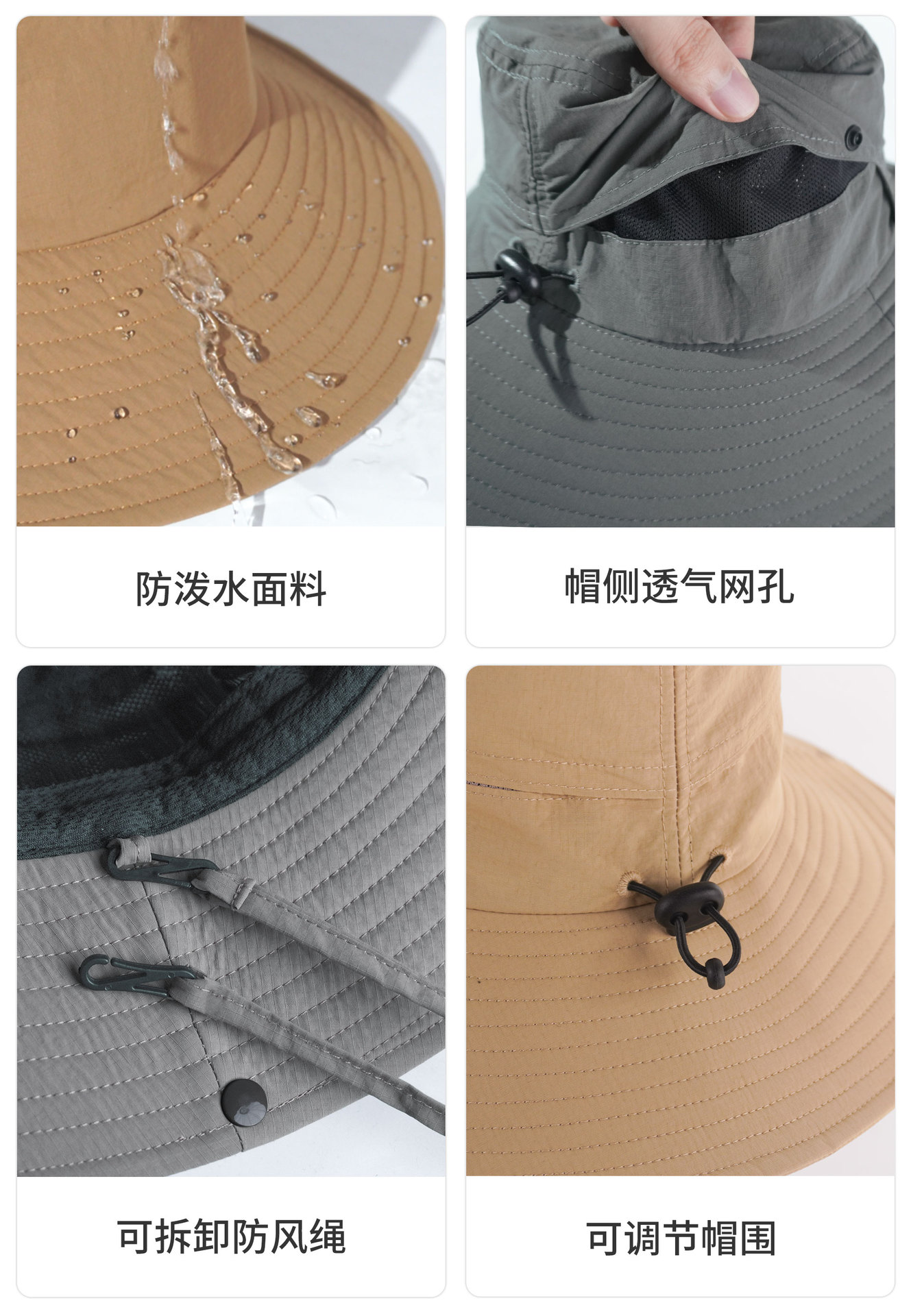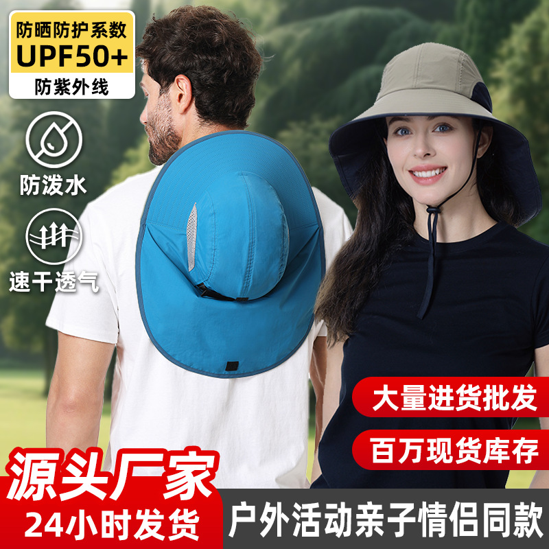批发UPF50+户外防晒遮阳帽 爆款轻盈透气登山徒步深顶大檐渔夫帽