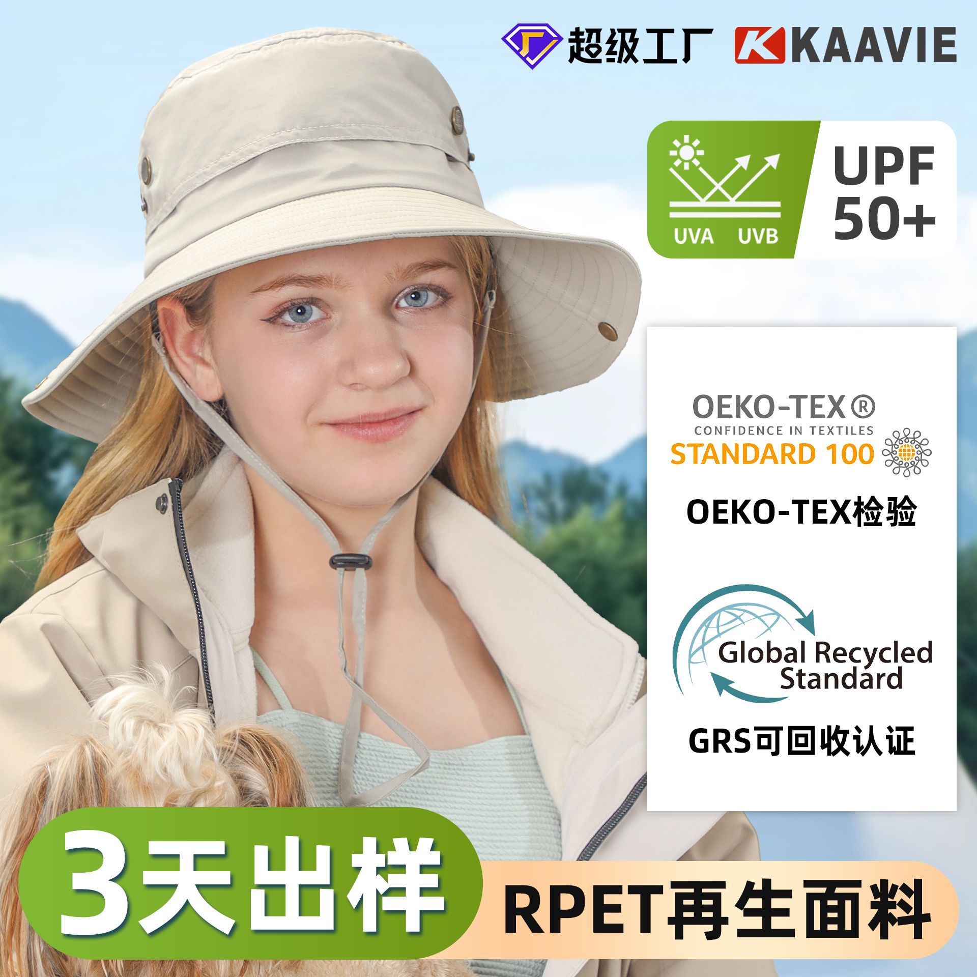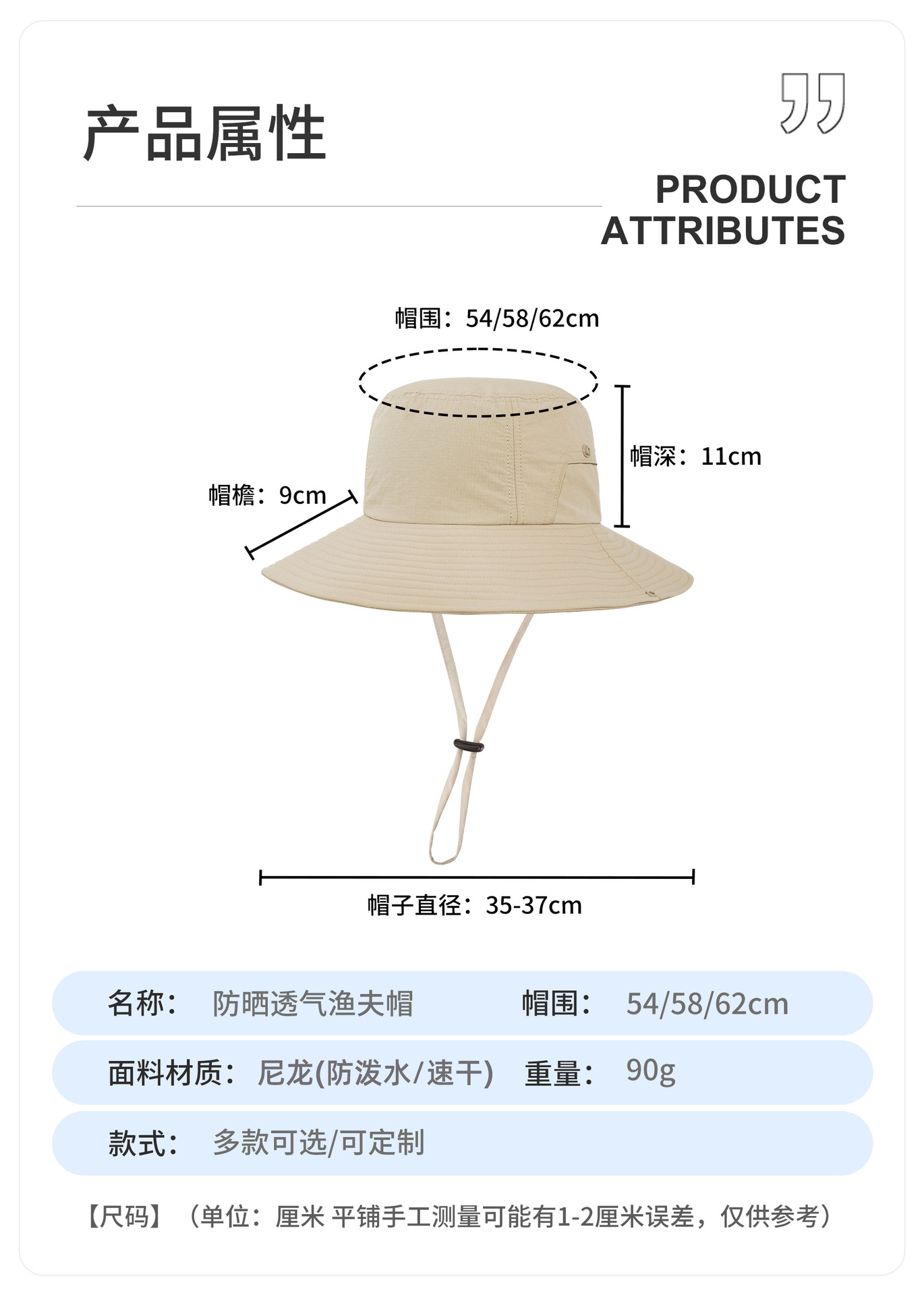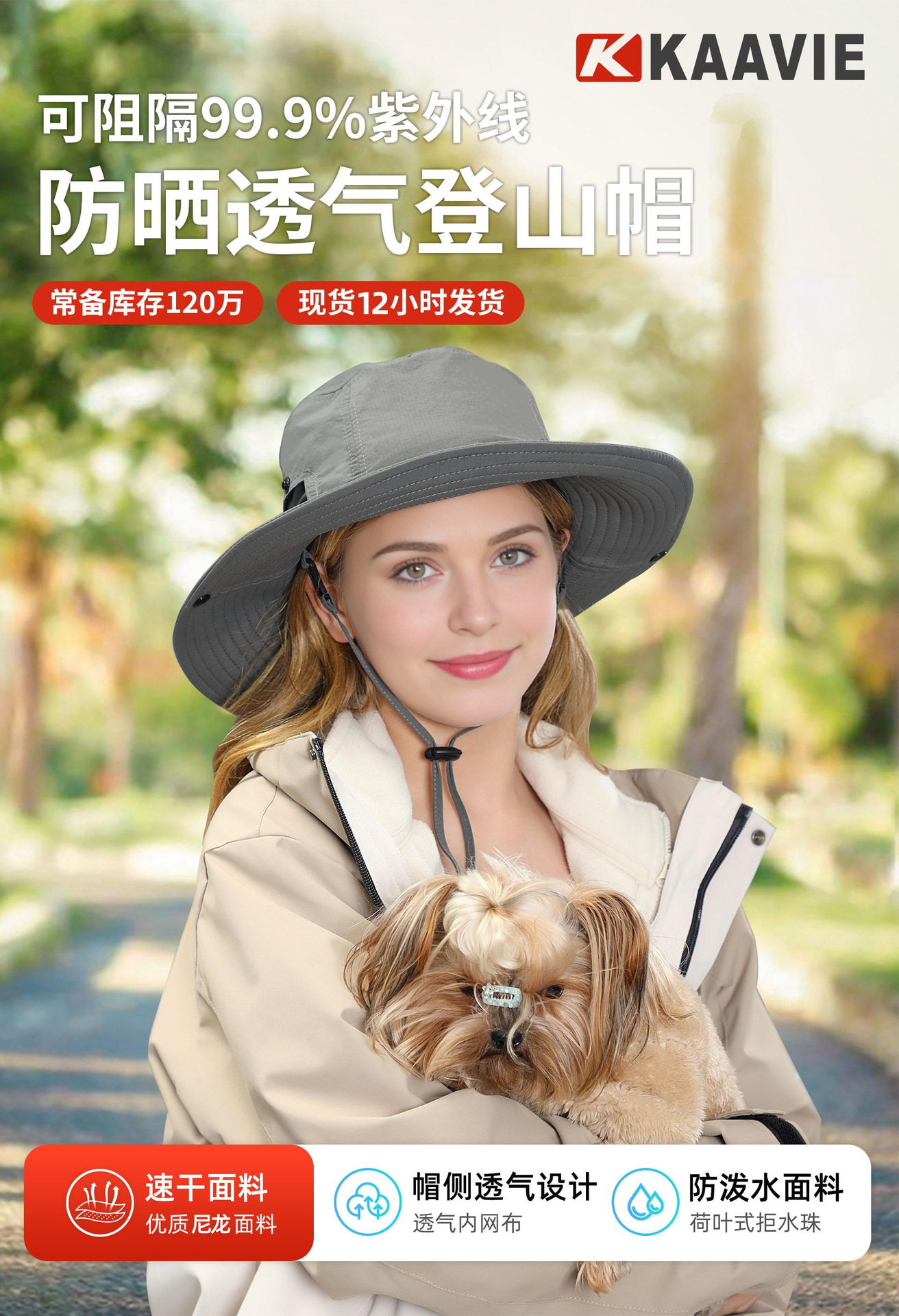 批发UPF50+户外防晒遮阳帽 爆款轻盈透气登山徒步深顶大檐渔夫帽