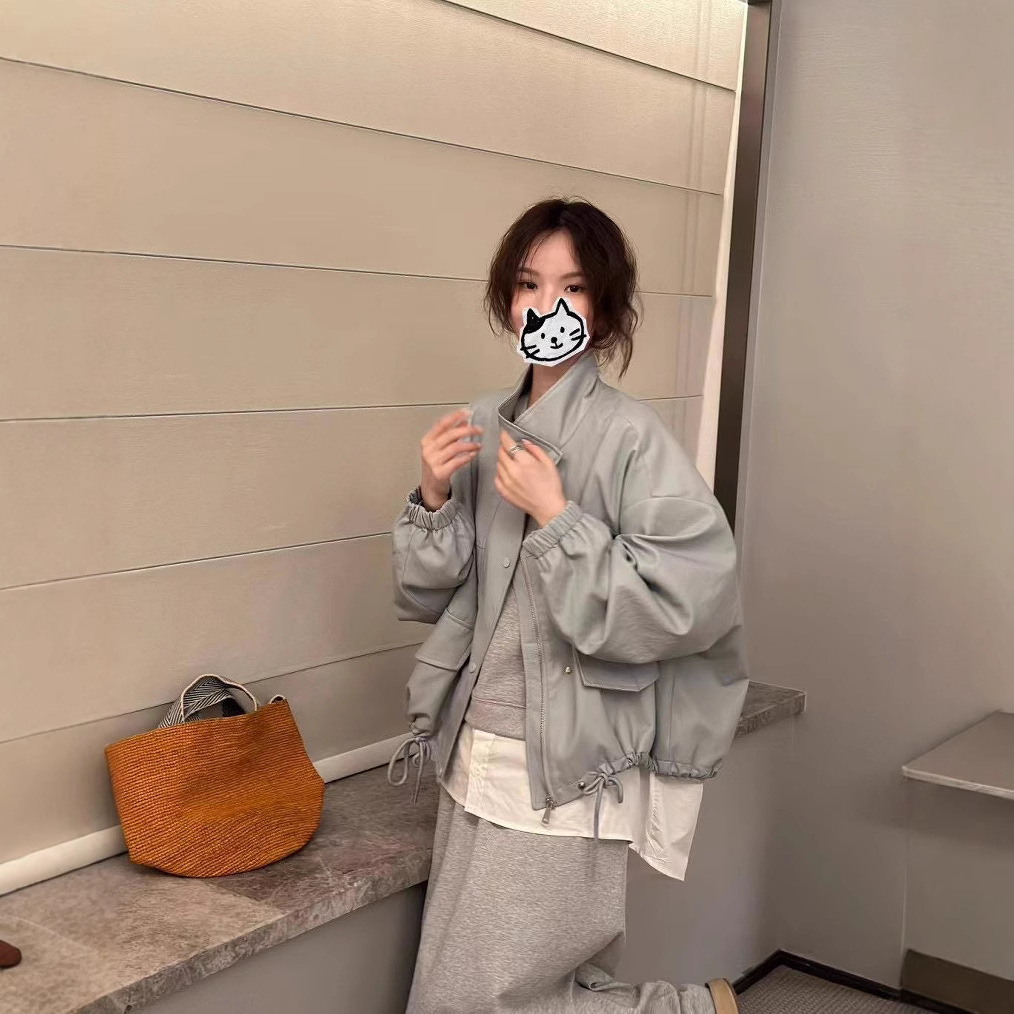 25春の革のコートの女性のゆったりとしたカジュアルな韓国版学院の毛皮のコートはやせているデザインの新型のコートを見せます。