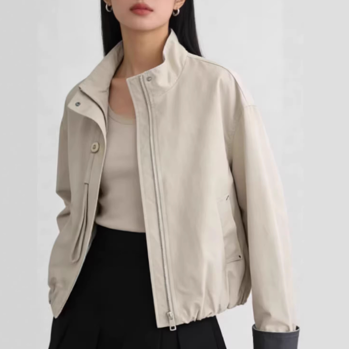 纯色立领长袖外套女26春秋韩版宽松显瘦拉链休闲百搭女士外套上衣