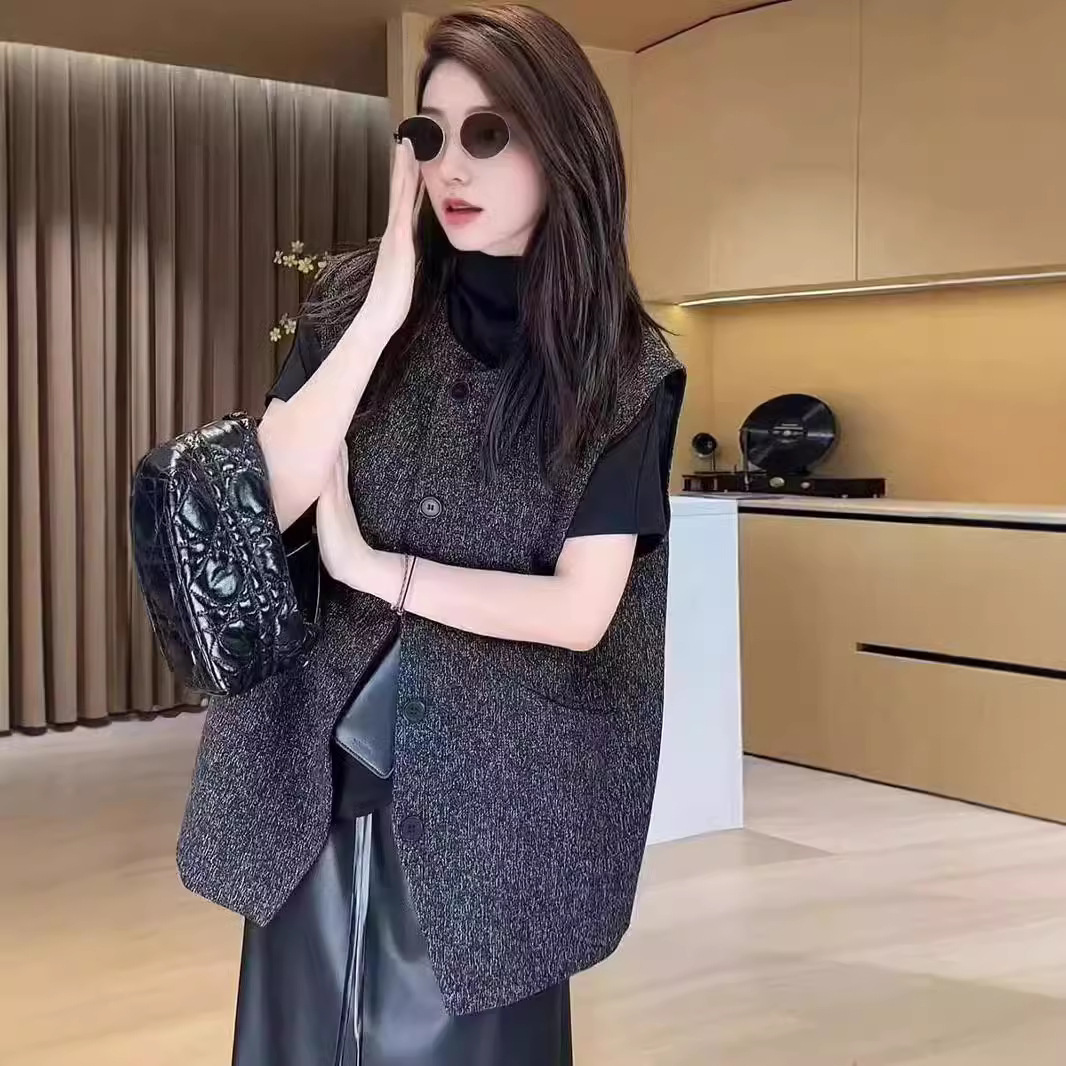 2024年秋のヨーロッパ商品の馬甲ラシャの馬挟みの肩の女性の新型の小さい大衆のきわめて簡単な百合の洋気の肩のファッション