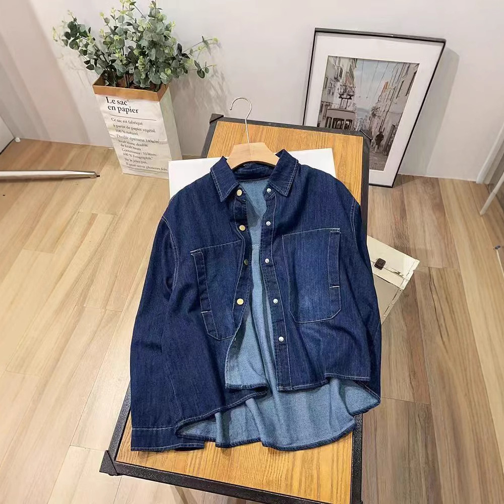 デニムのシャツ2025春の新型韓国の長袖の百合のコートの女性の小さい大衆のカジュアルでゆったりしているシャツの上着