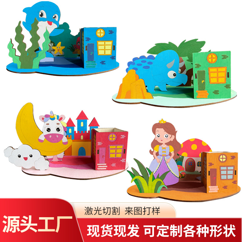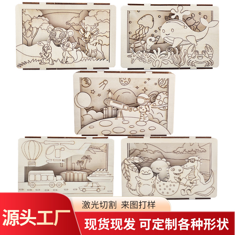 3D木製シーン組み立て玩具、塗り絵、落書き、子供早期教育、知育DIY、創造科学教育材料パック組み立て