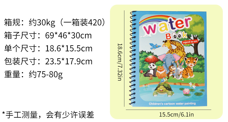 跨境纯英文儿童神奇水画本可重复用幼儿园益智涂色宝宝反复涂鸦册