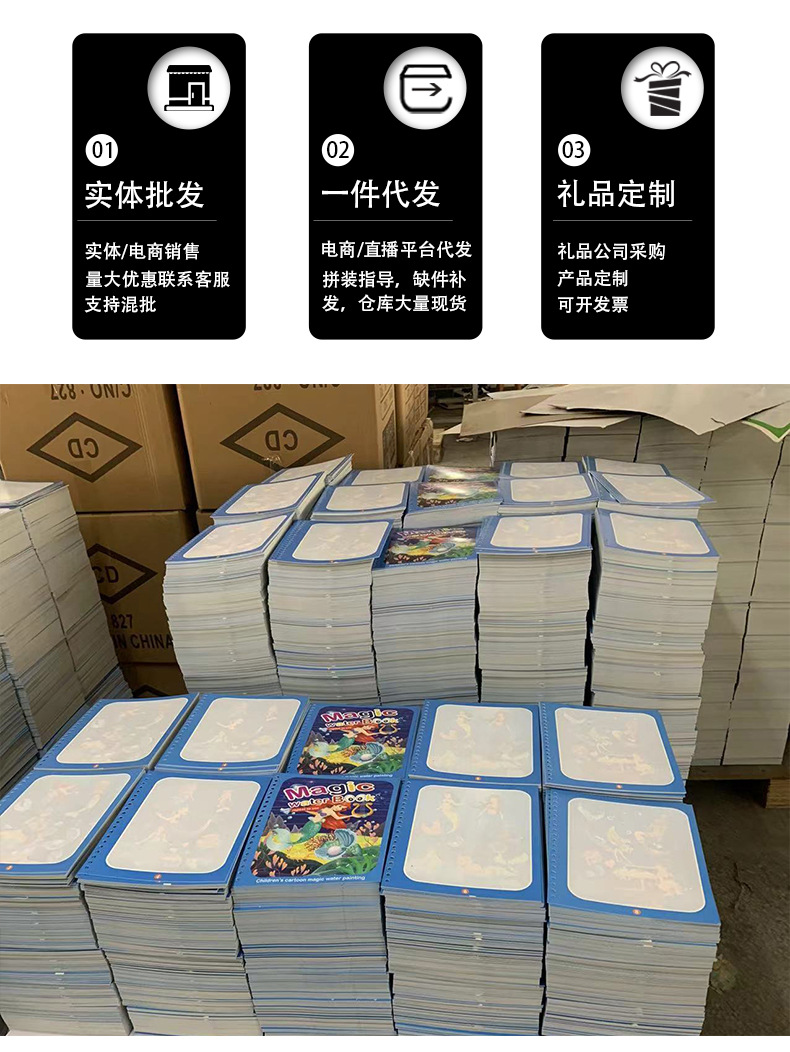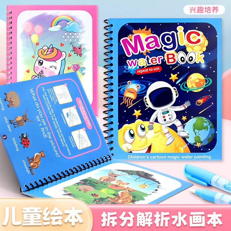 跨境遇水变色绘画本魔法 创意画画本批发儿童图画本学生涂色本