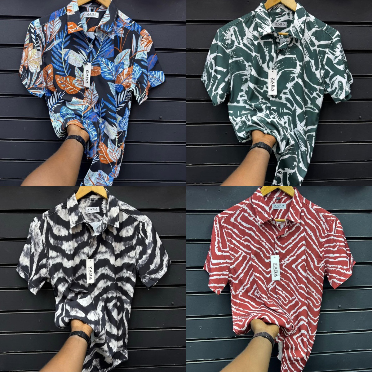 跨境Men'sshirt男士碎花短袖衬衫夏季翻领衬衣外套衬男透气抗菌