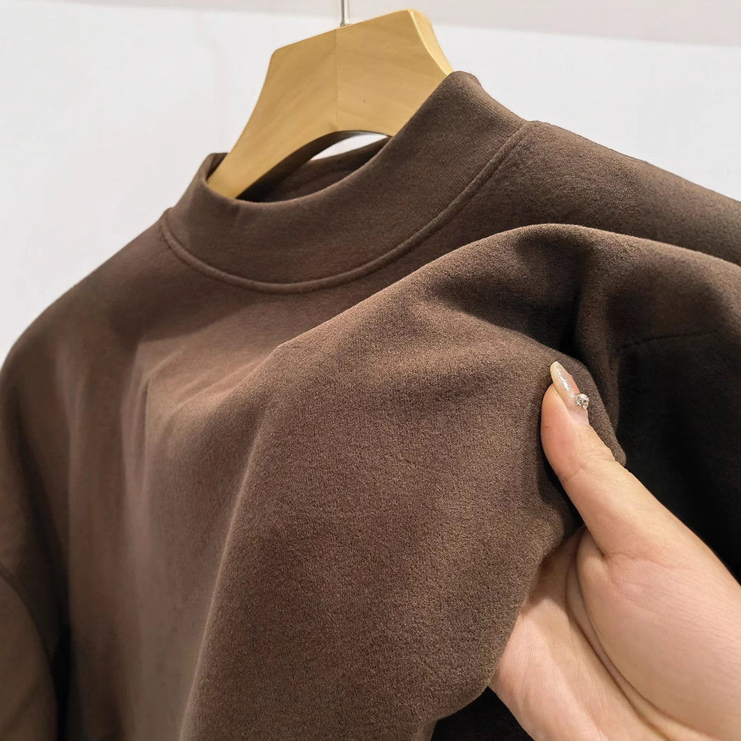 徳絨毛の半高襟の底のシャツの男性の両面のベルベットの中に長袖のtシャツの潮流の冬の弾力性の保温の下着を掛けます。