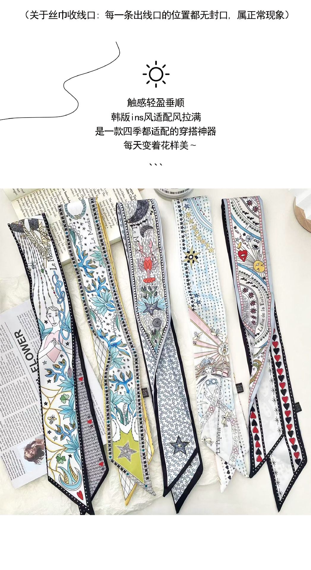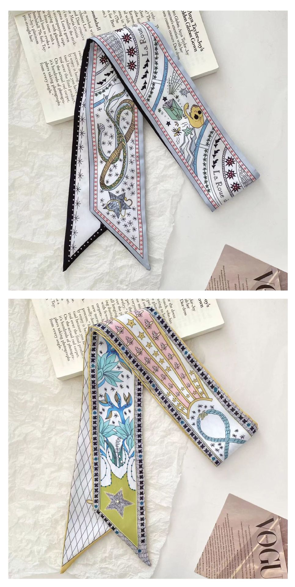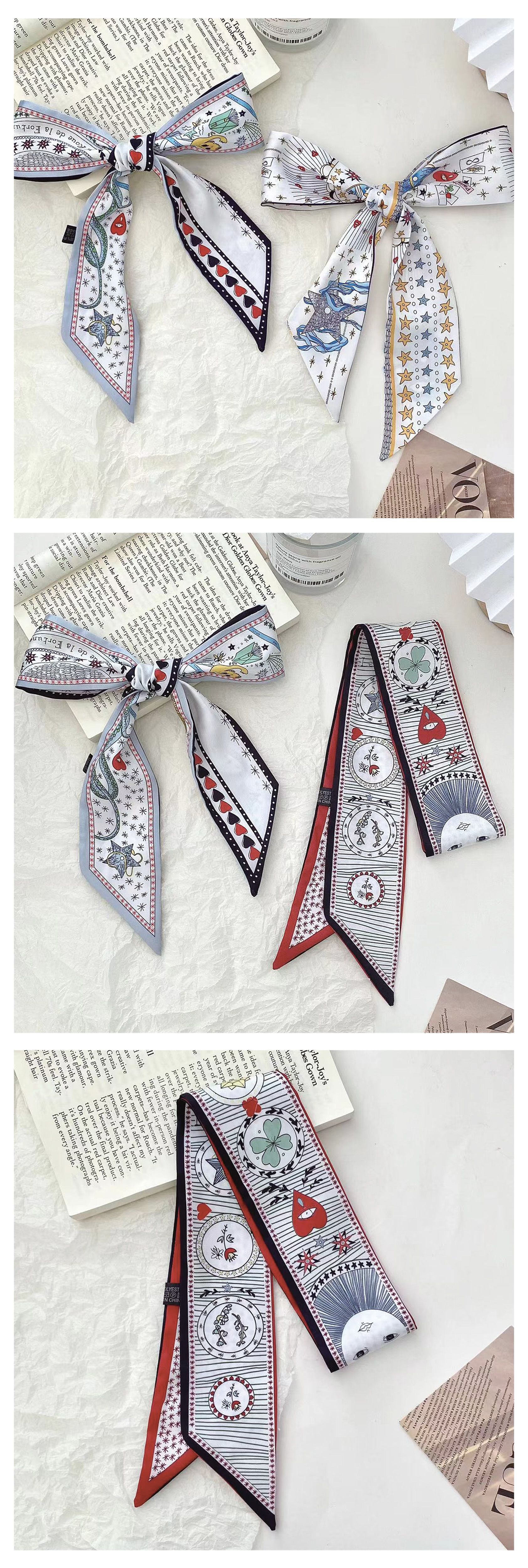 フレンチレトロ風花柄シルクスカーフ、新作多用途ネックタイ、バッグハンドル装飾、おしゃれなヘアバンド、リボンアクセサリー
