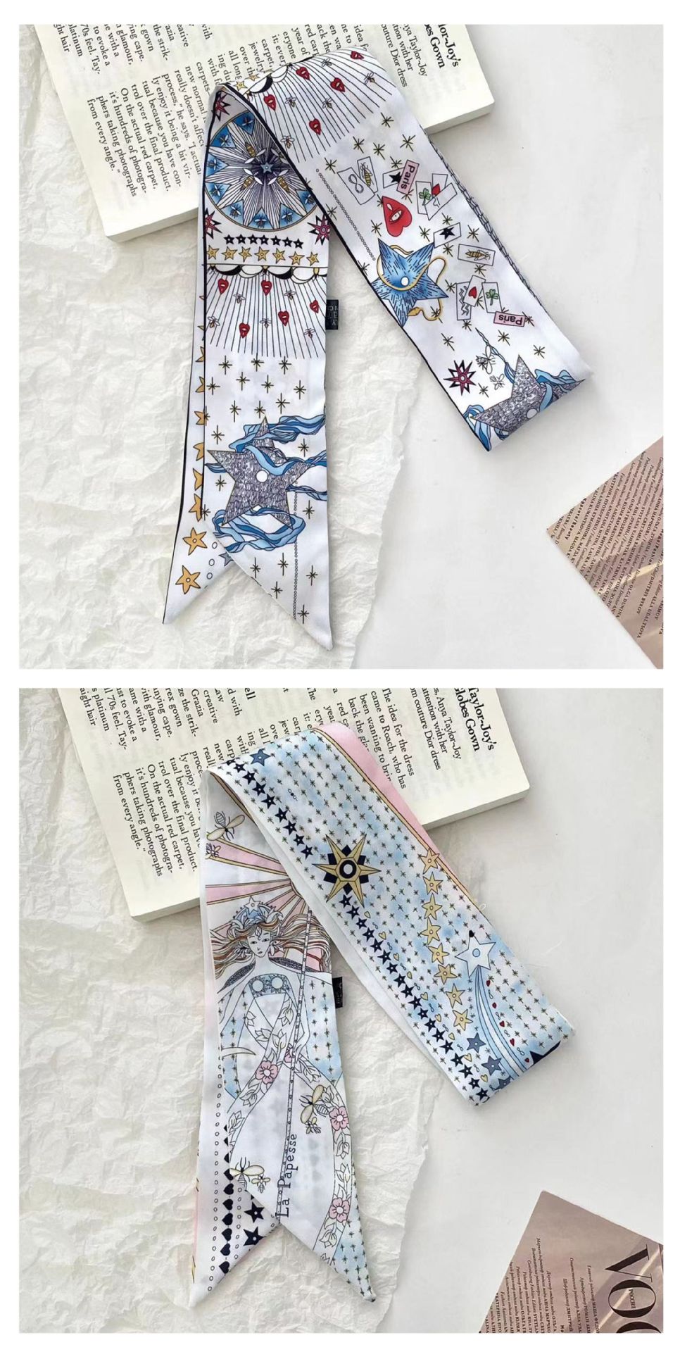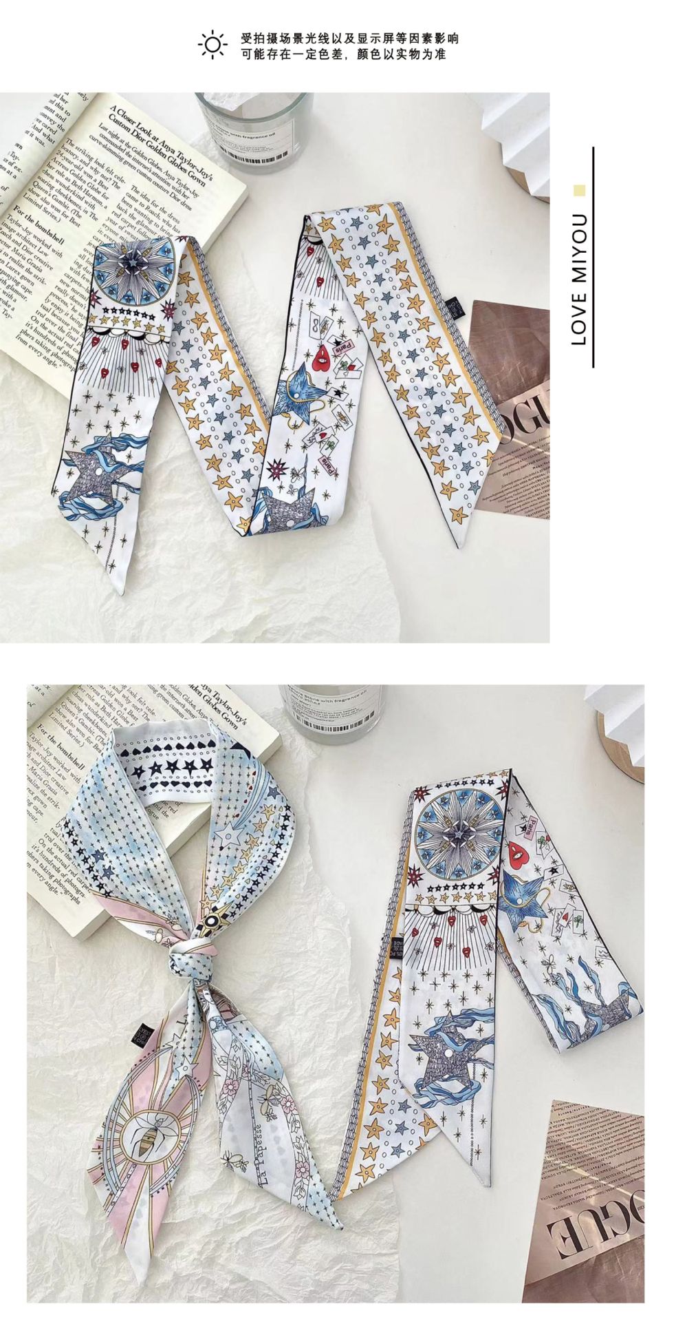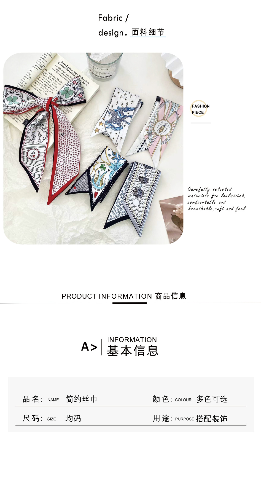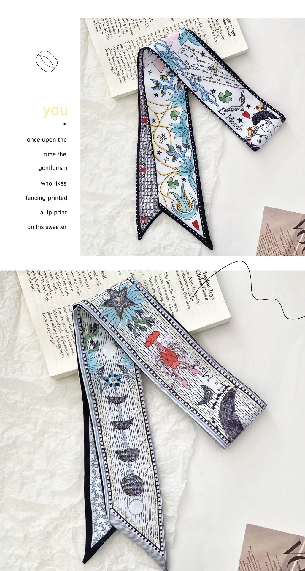フレンチレトロ風花柄シルクスカーフ、新作多用途ネックタイ、バッグハンドル装飾、おしゃれなヘアバンド、リボンアクセサリー