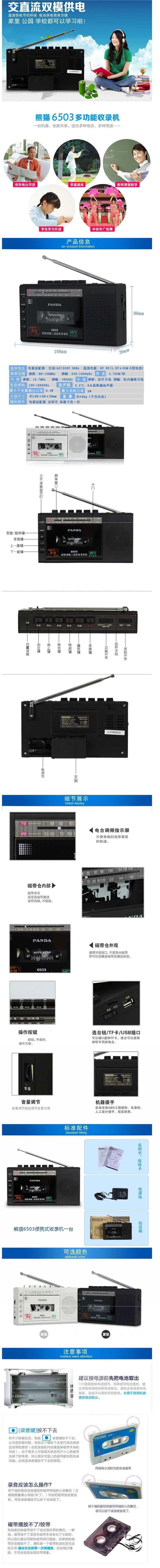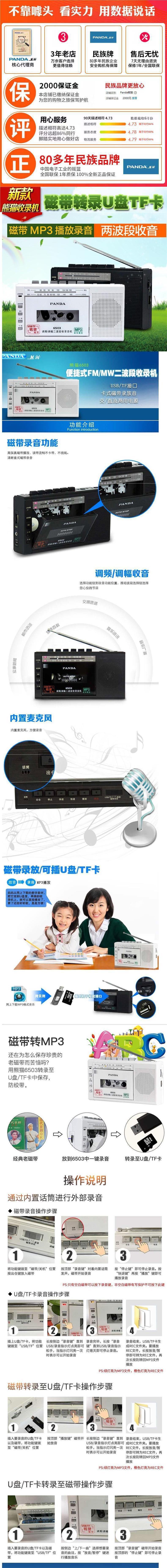 パンダラジカセ6503テープ転送mp3Uディスクポータブルラジオ录音再生机器レトロテープレコーダー