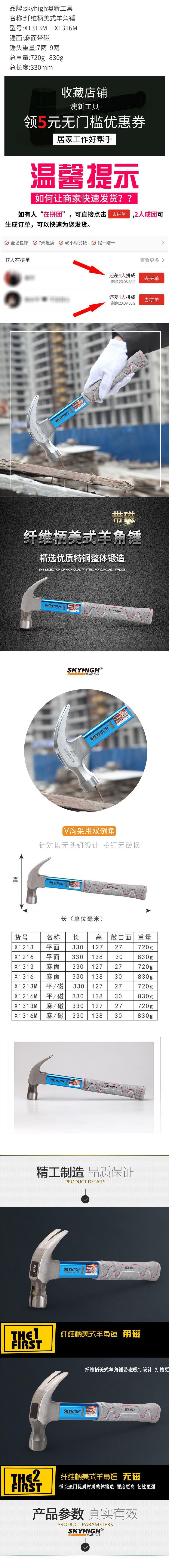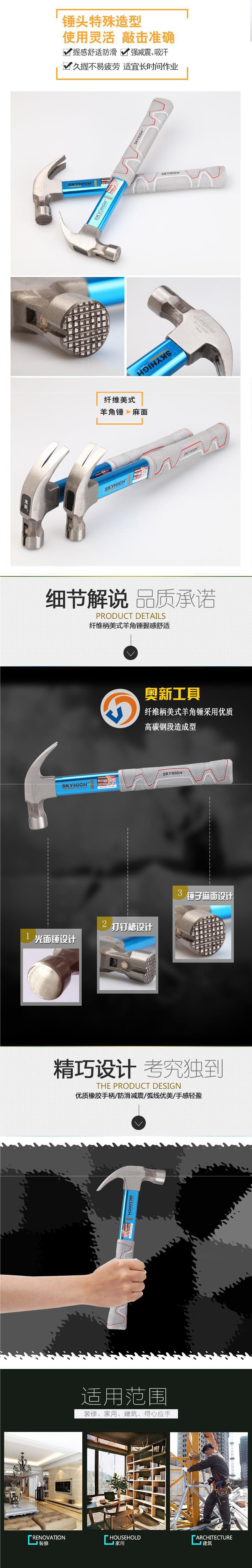 奥新工具繊維柄アメリカ羊角ハンマー高炭素鋼鉄槌ハンマーハンマー麻面磁気木工ハンマー