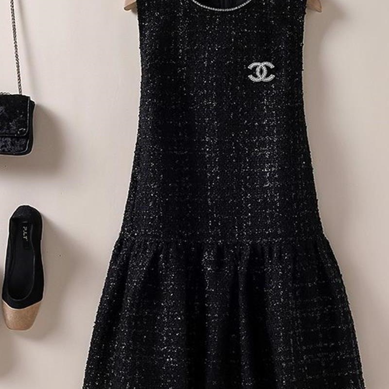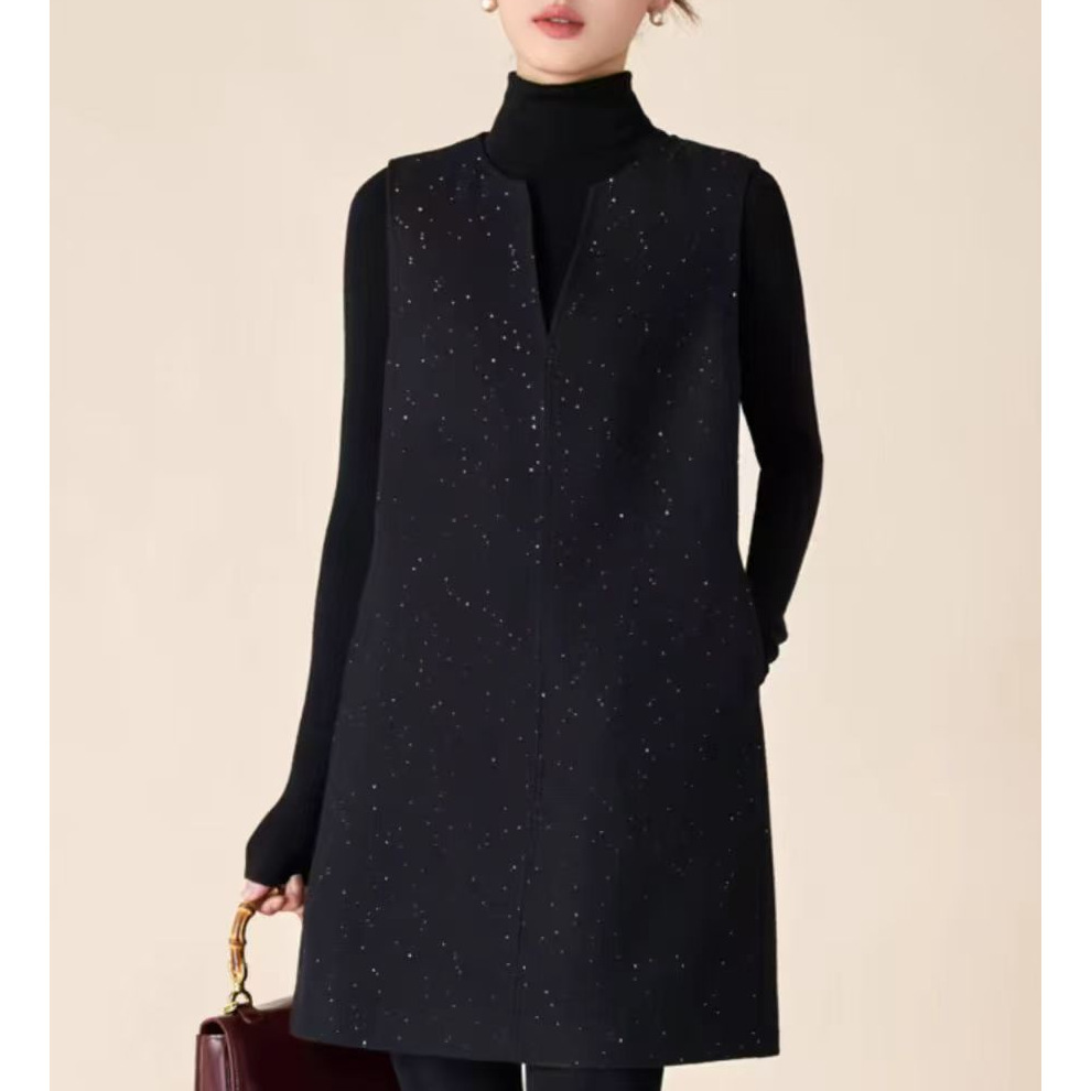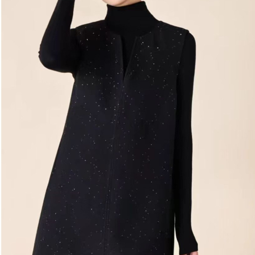 B0MF-0033叠穿直筒背心裙2025秋冬新款小香风亮片圆领无袖马甲裙