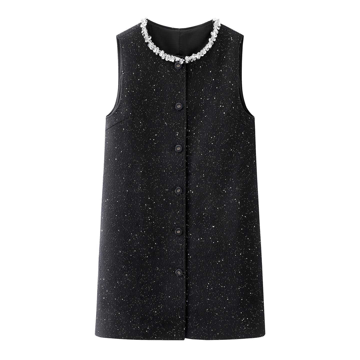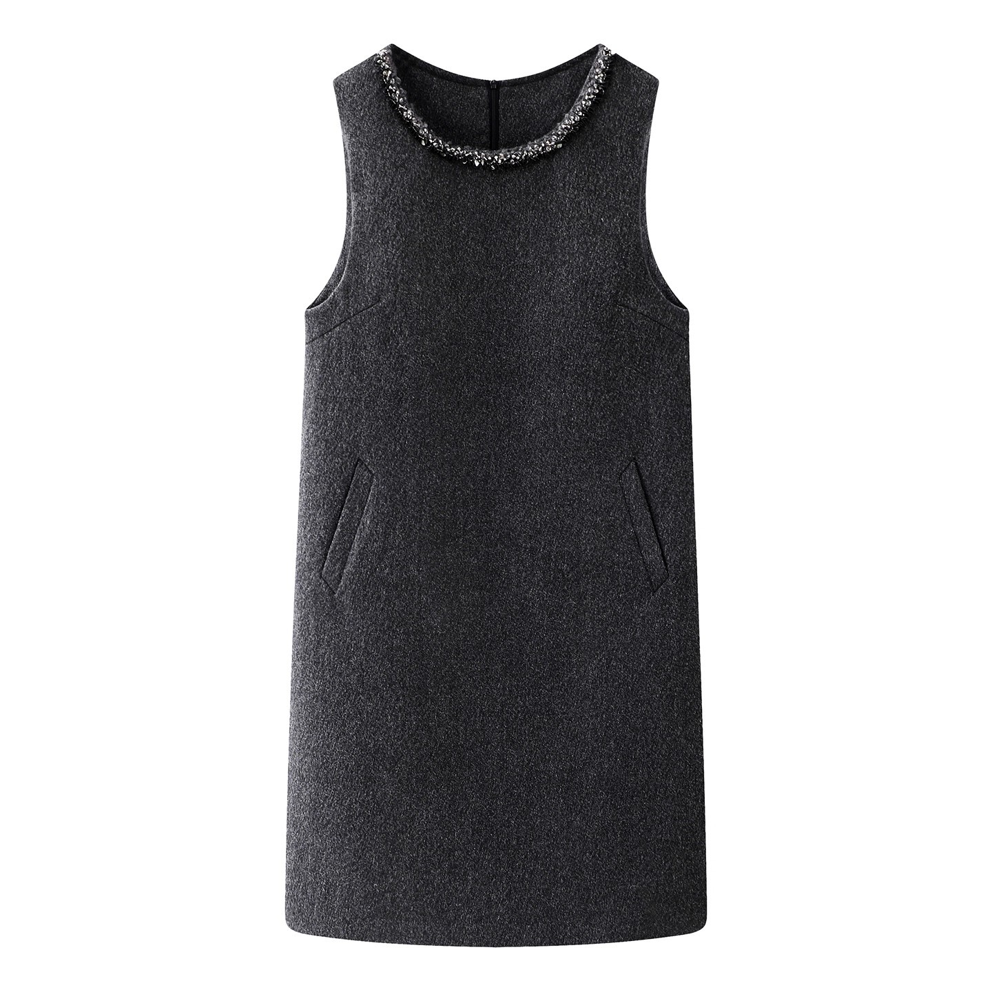 2025冬季新款小香风手工钉珠圆领无袖毛呢背心裙女宽松连衣裙