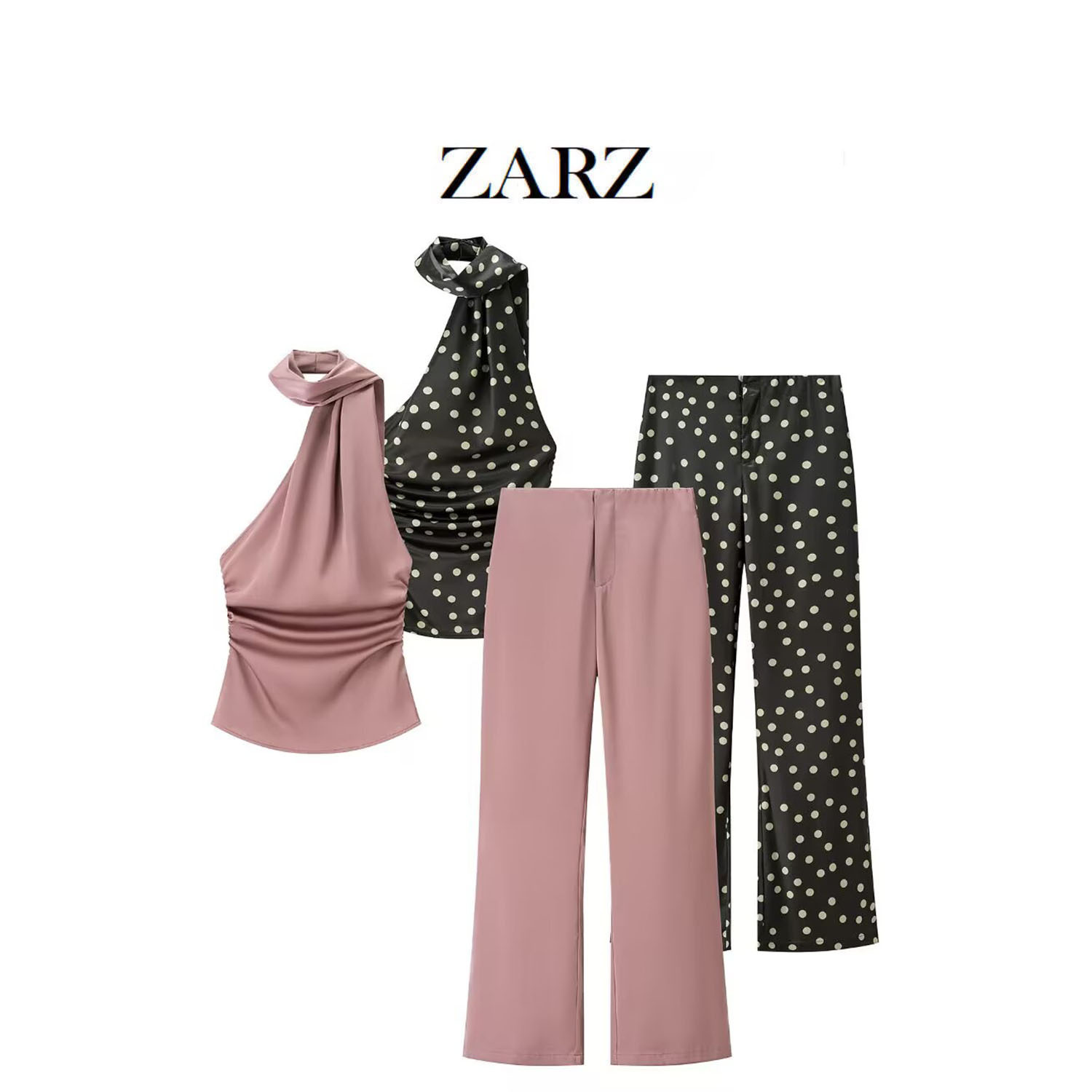 ZARZ 自制 欧美风 新款女装 百搭围巾式挂脖领上衣丝缎质感喇叭裤