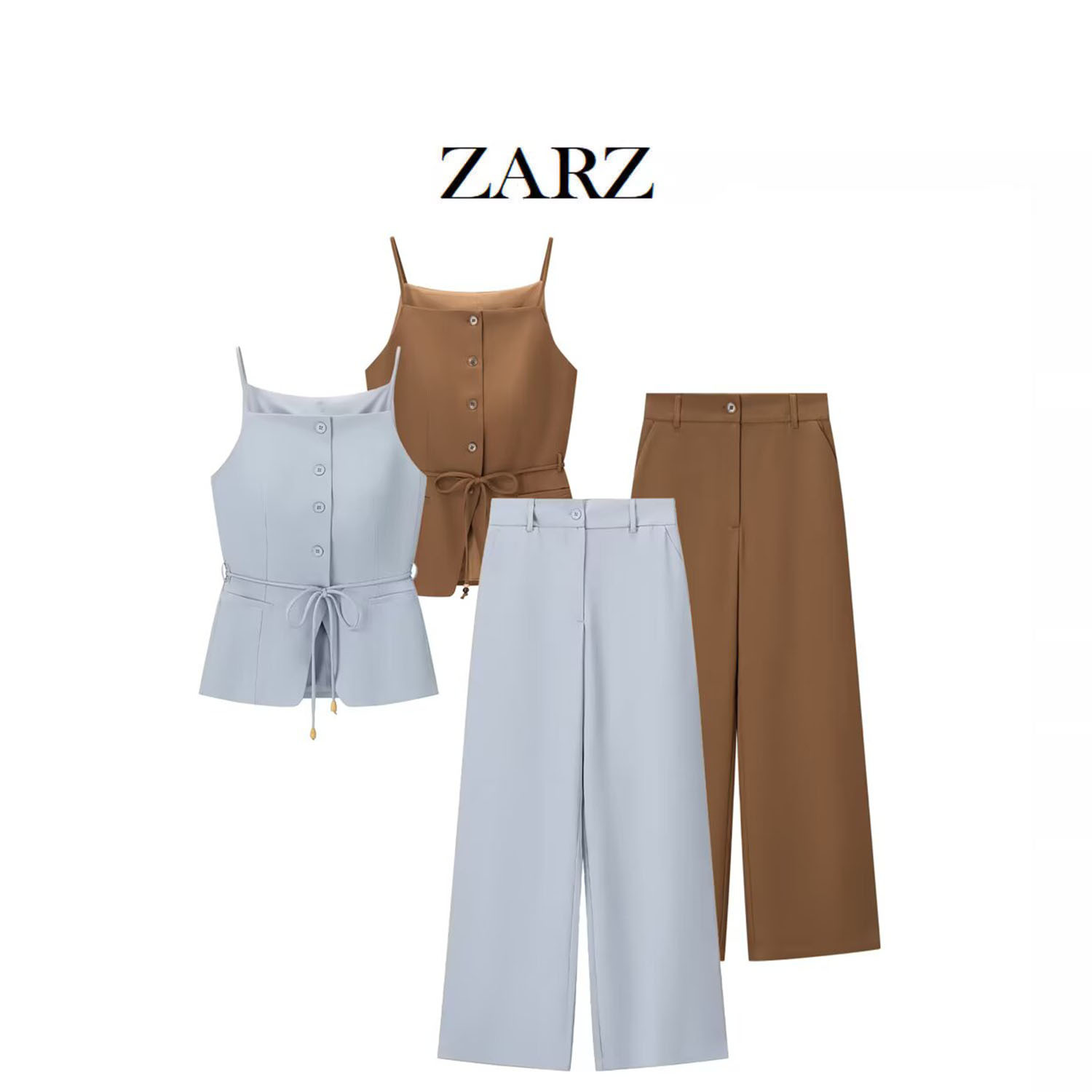 ZARZ 自制 欧美风 新款女装 洋气 V领挂脖马甲高腰长裤休闲套装
