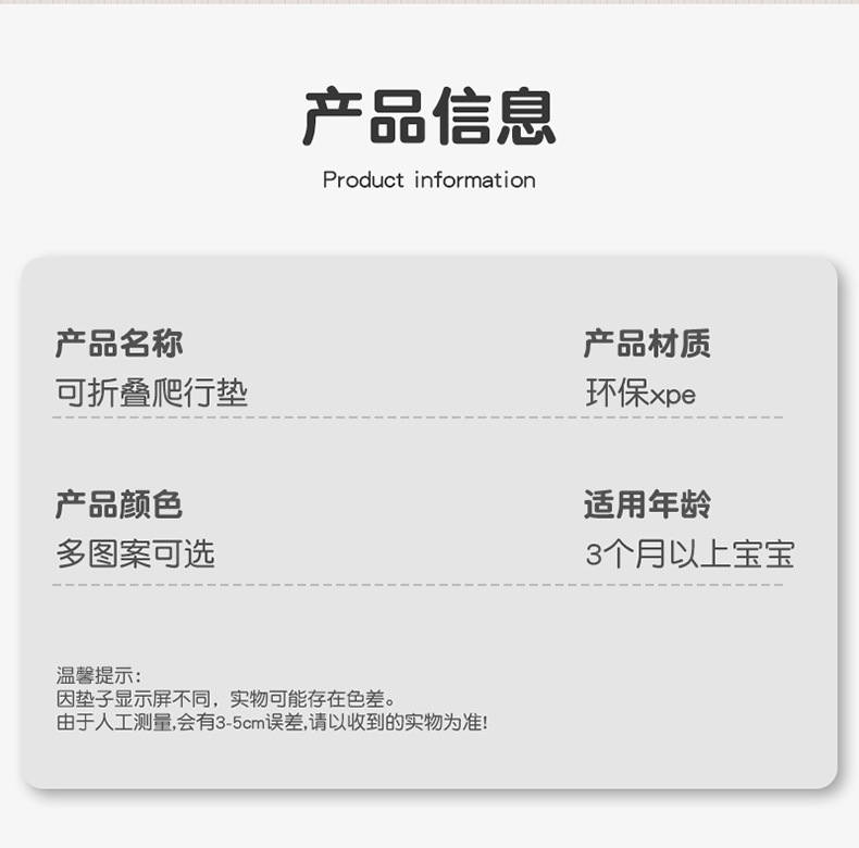 宝宝加厚爬行垫爬爬垫可折叠婴儿童泡沫地垫隔凉家用卧室垫子