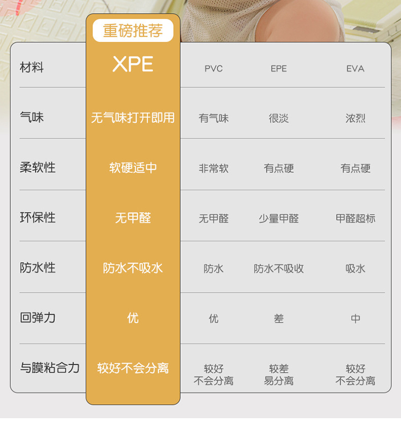 赤ちゃんの爬行マット家庭のリビングルームの赤ちゃんの爬行マットXPE折り畳み可能な無味無ホルムアルデヒド厚い発泡マット