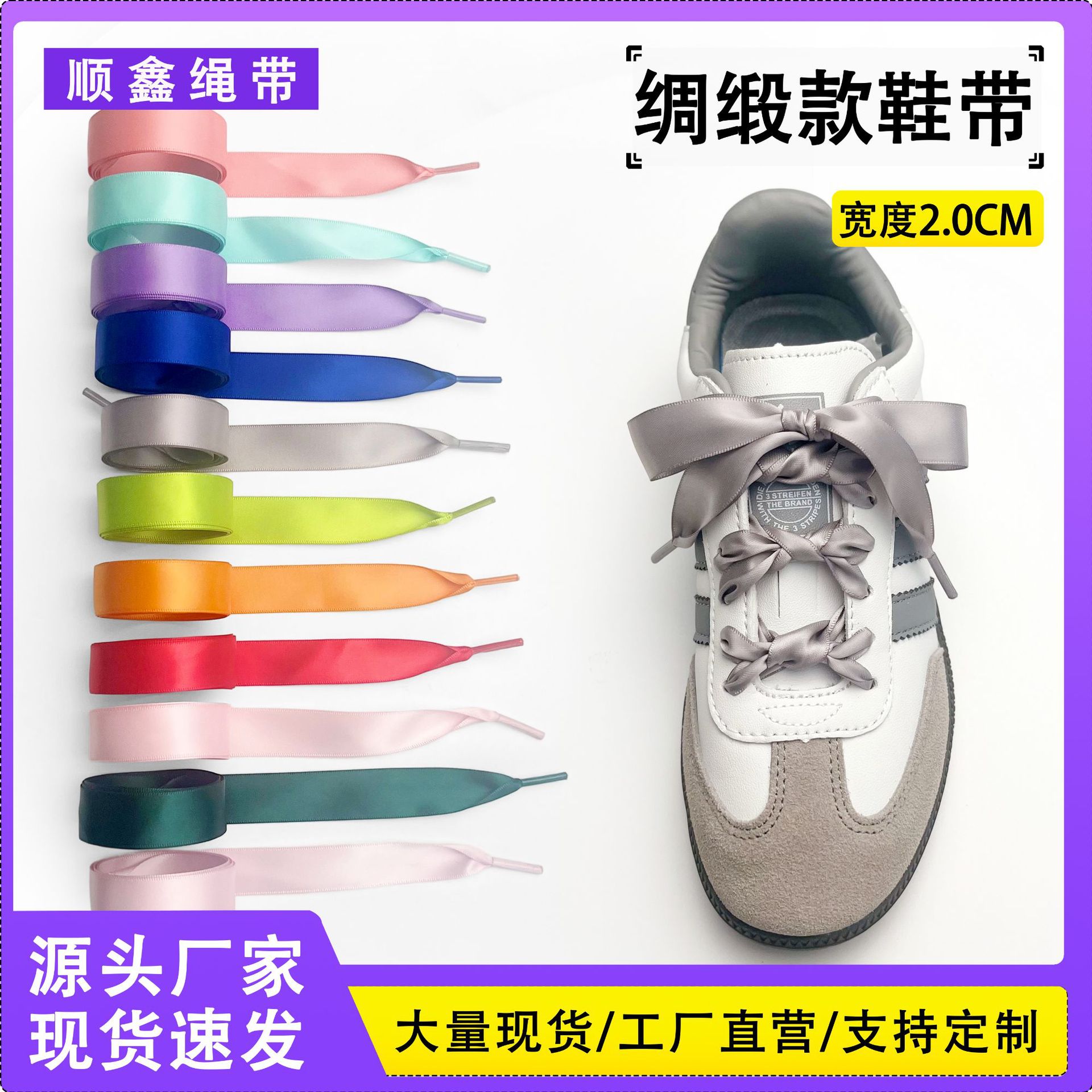 卸売りシルク靴ひも2cmレースサテンリボン白黒カラーキャンディー色フラットリボン靴ひも1足