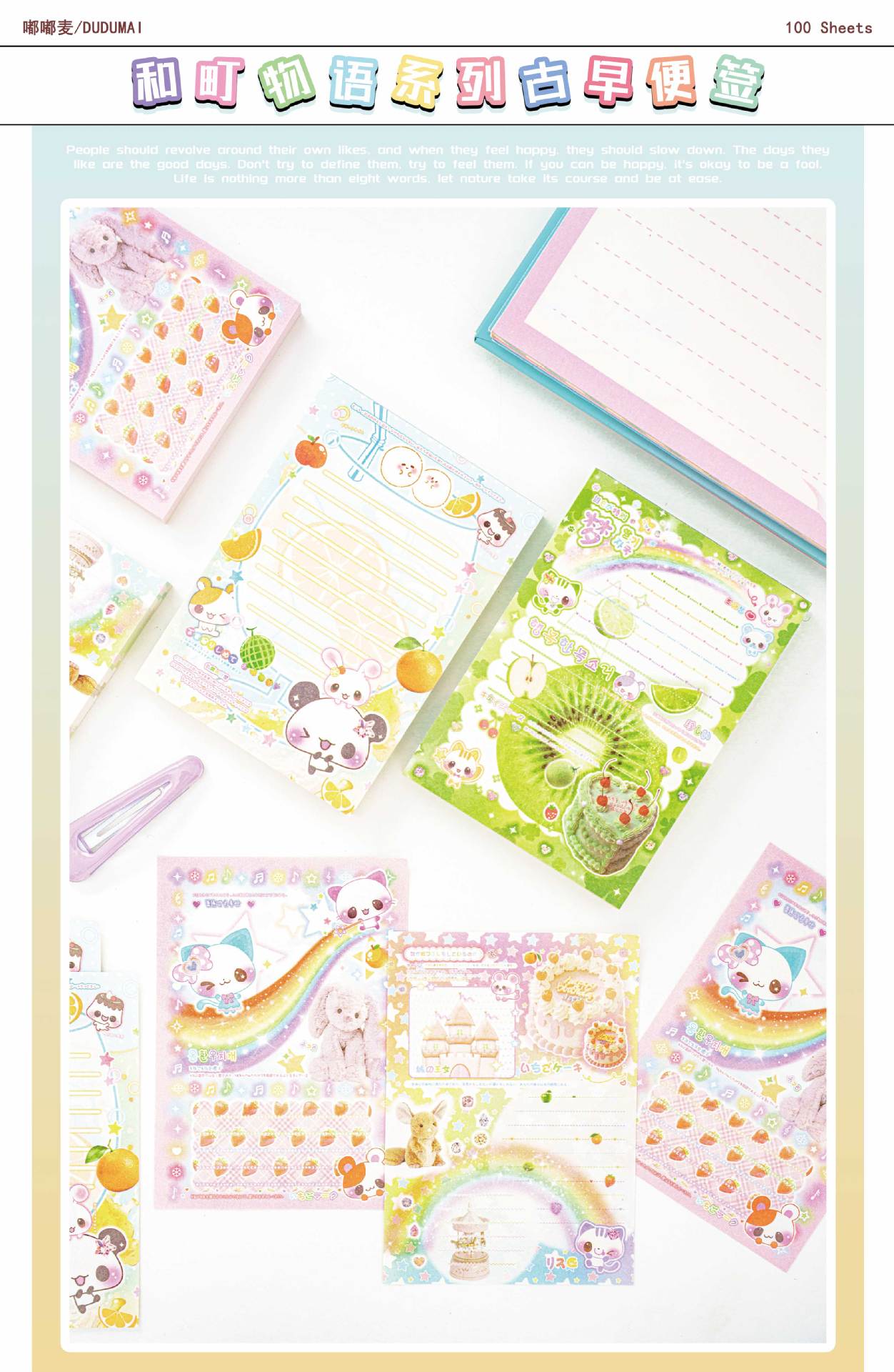 100枚ブツブツ麦和町物語古早付箋紙無粘り日系かわいい萌え動物手帳素材