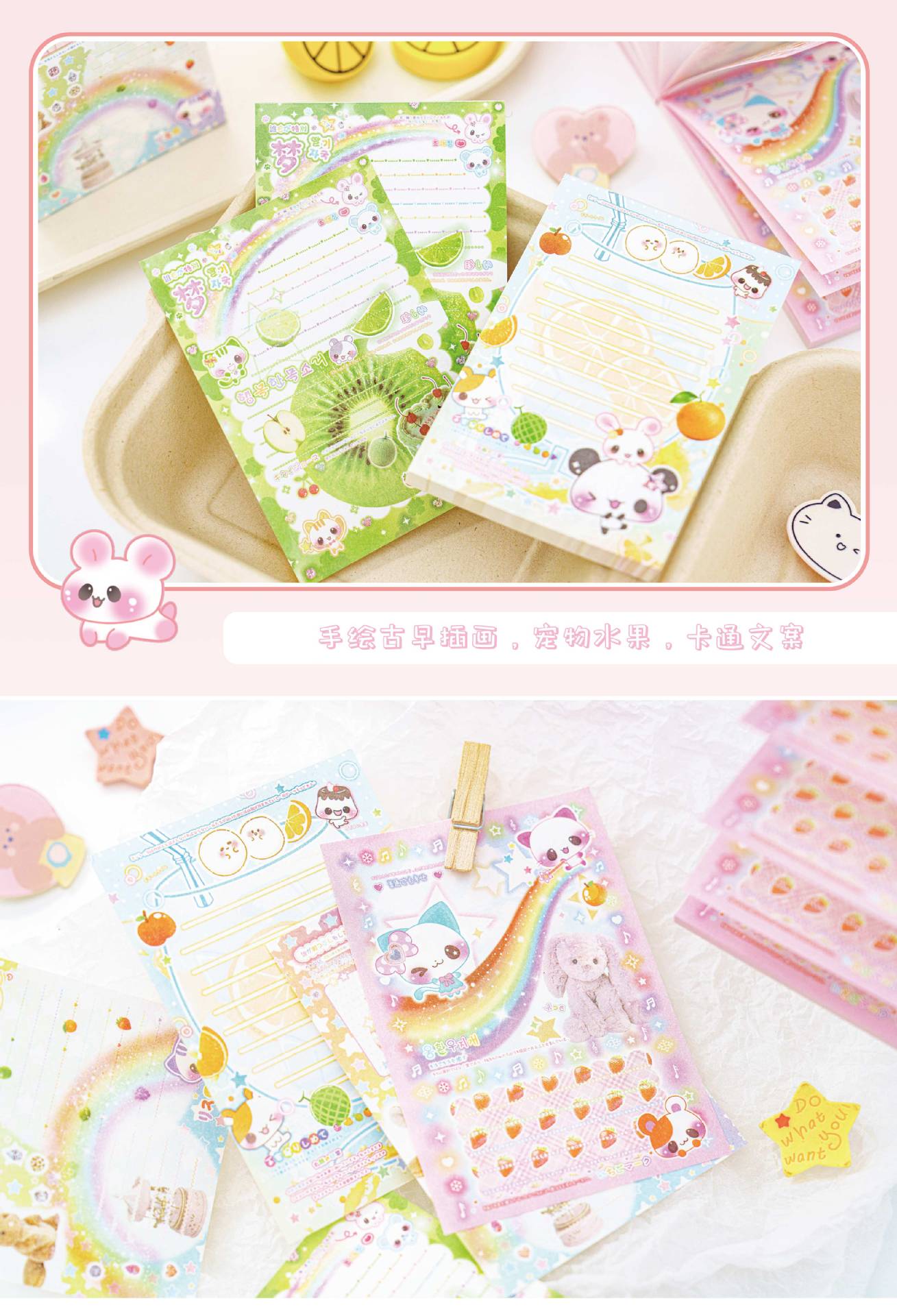 原创彩虹小兔小熊便签无粘性ins可爱卡通学生高颜值装饰素材纸
