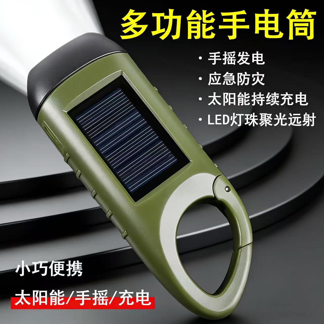 手电筒充电手摇太阳能强光便携超亮家用迷你led灯多功能小型手灯