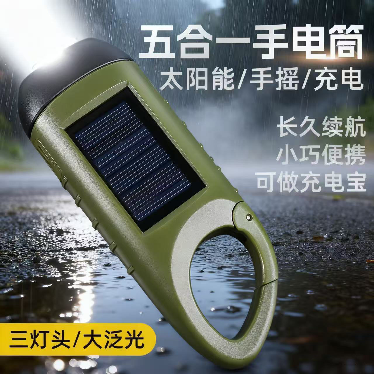 新款太阳能露营应急照明灯太阳能手摇电筒户外防水多功能手电筒