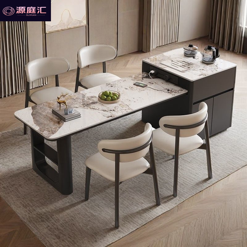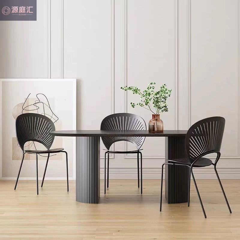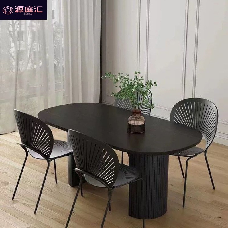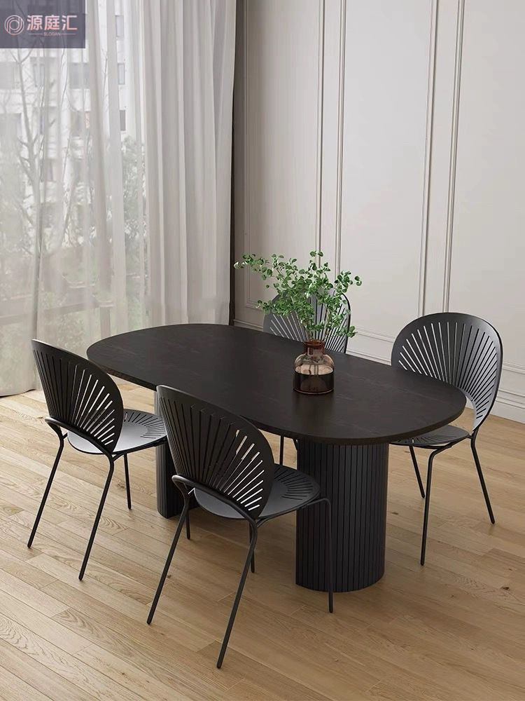 餐桌家用餐厅高级感创意实木餐桌黑色意式轻奢抖音爆款桌子家具