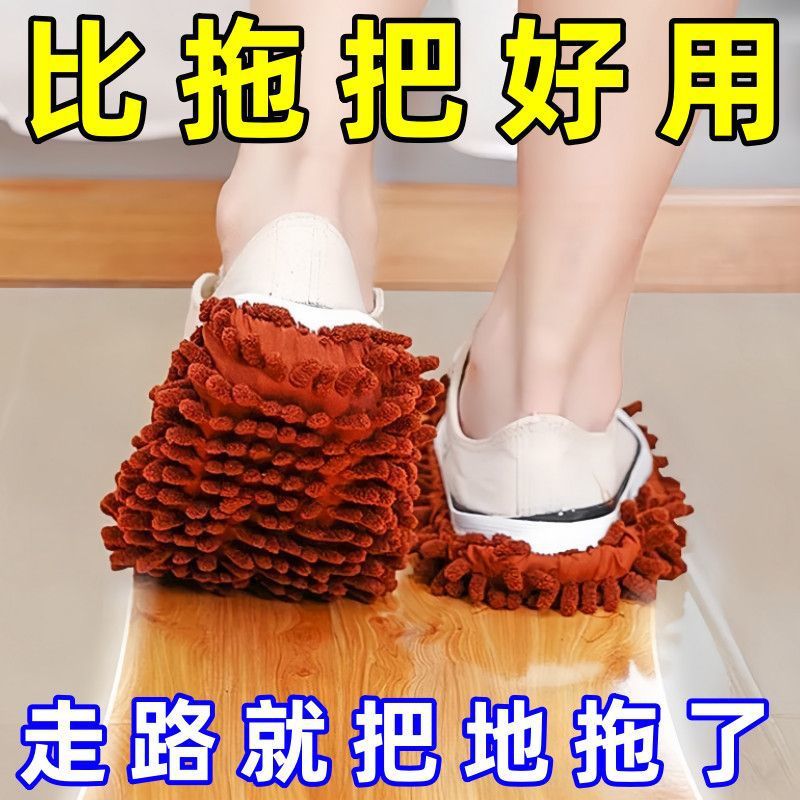 懒人拖地鞋套擦地拖鞋脚踩静音雪尼尔吸水拖布墩布扫地拆洗擦地布