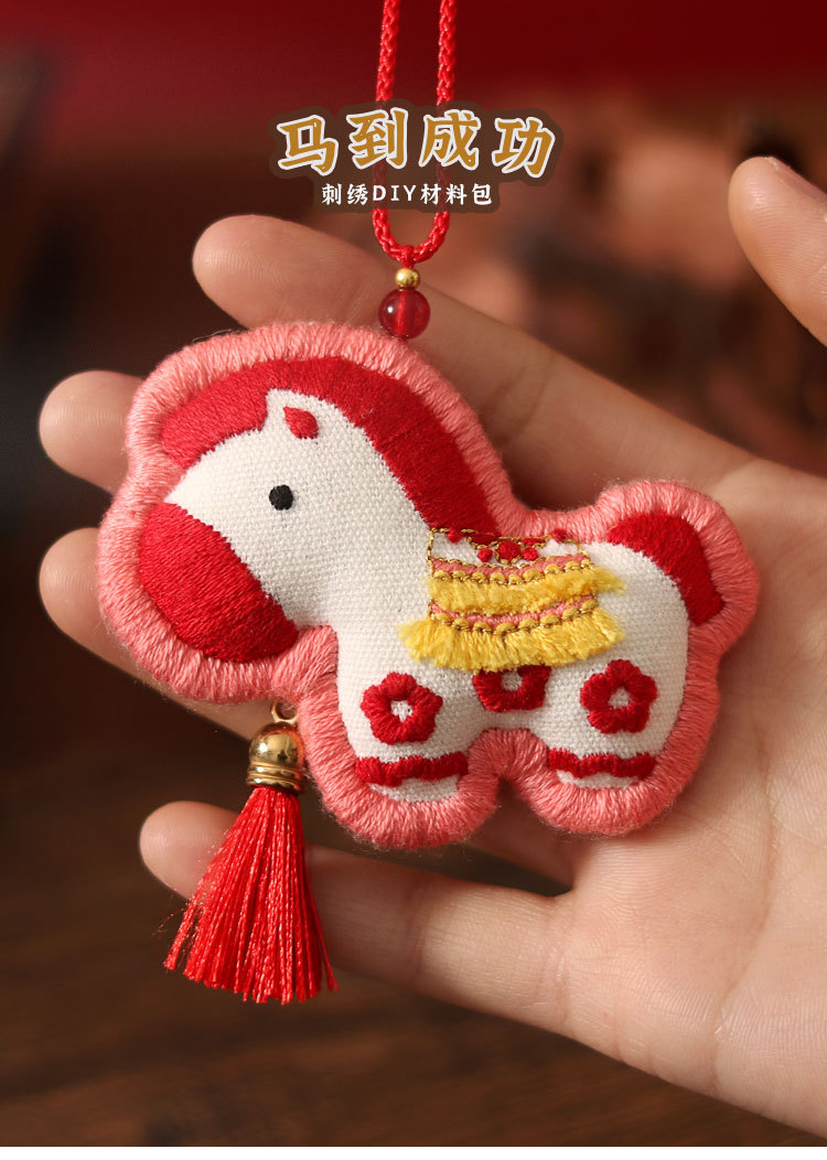 梵椿2026马年香包刺绣香囊挂件小马diy材料马上有钱香包绣片团建