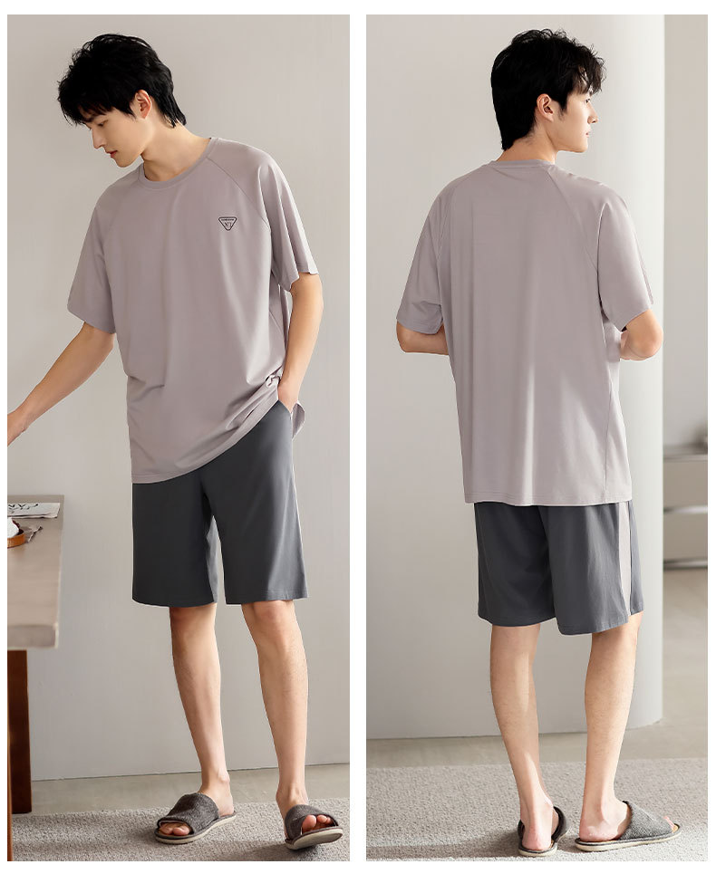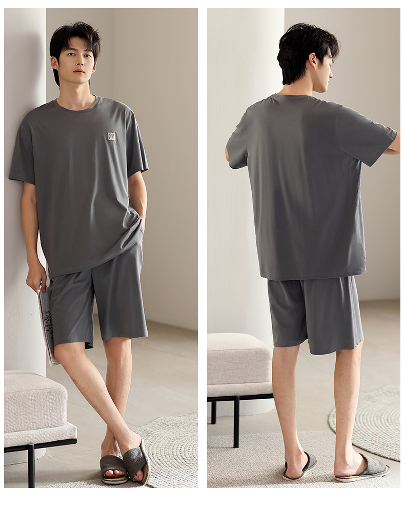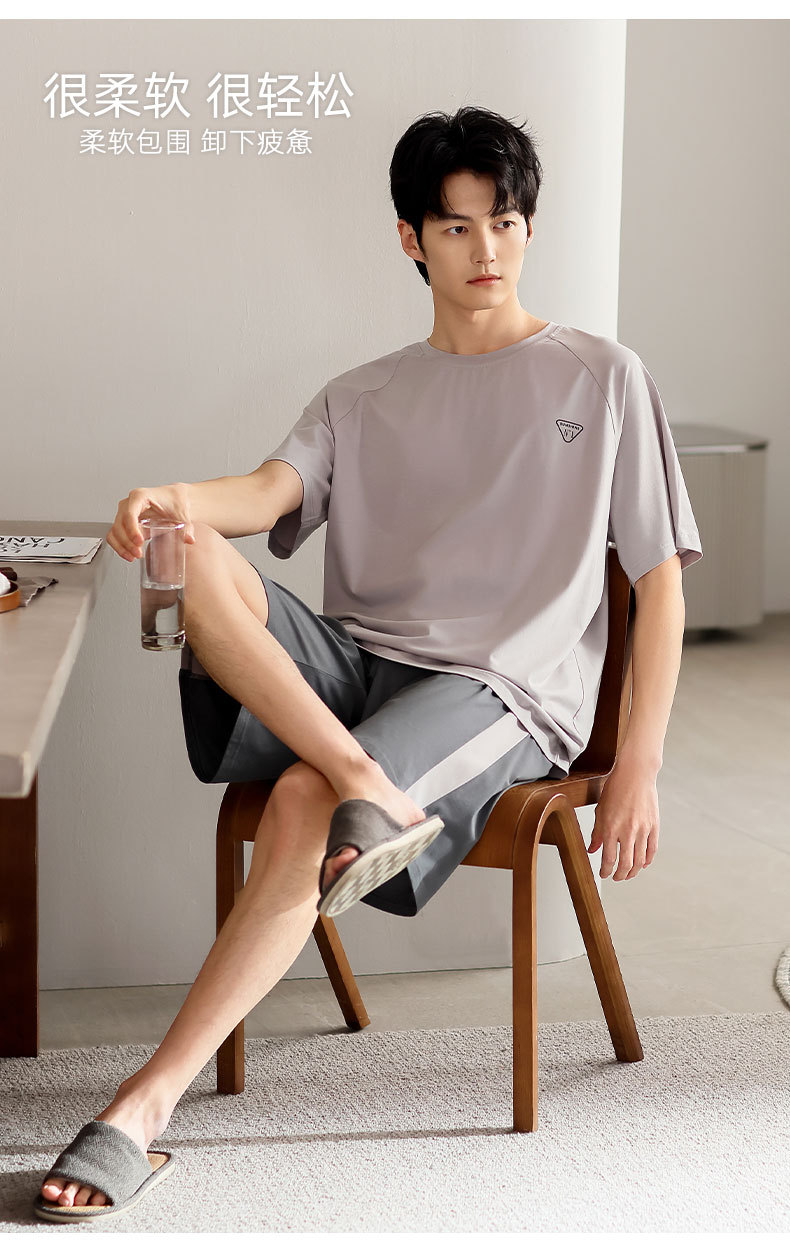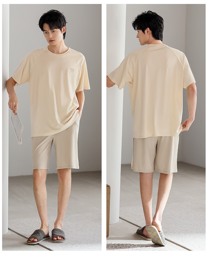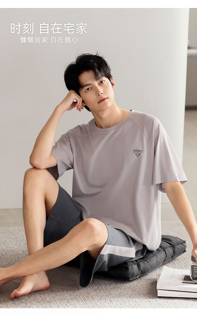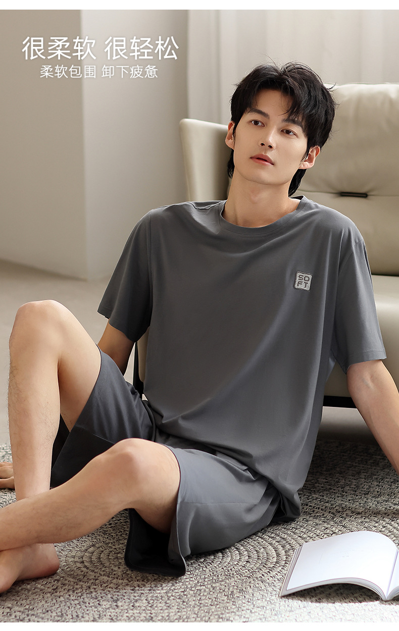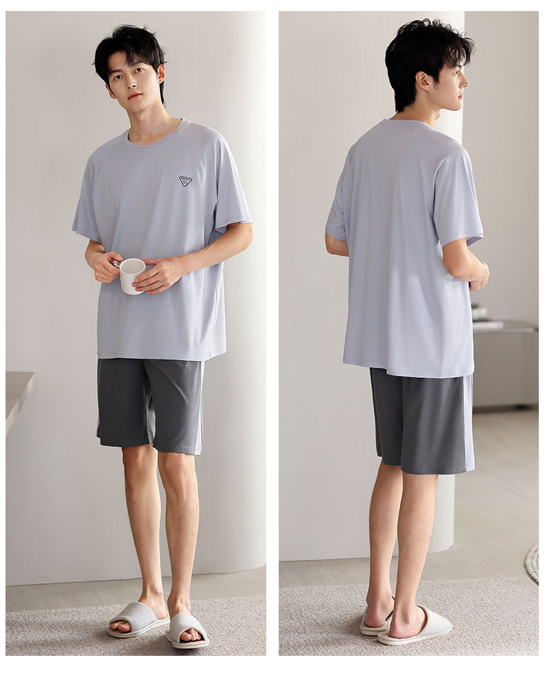 青少年パジャマ男性夏の薄い半袖半ズボン夏の涼感学生純色の大きいサイズの家庭服セット