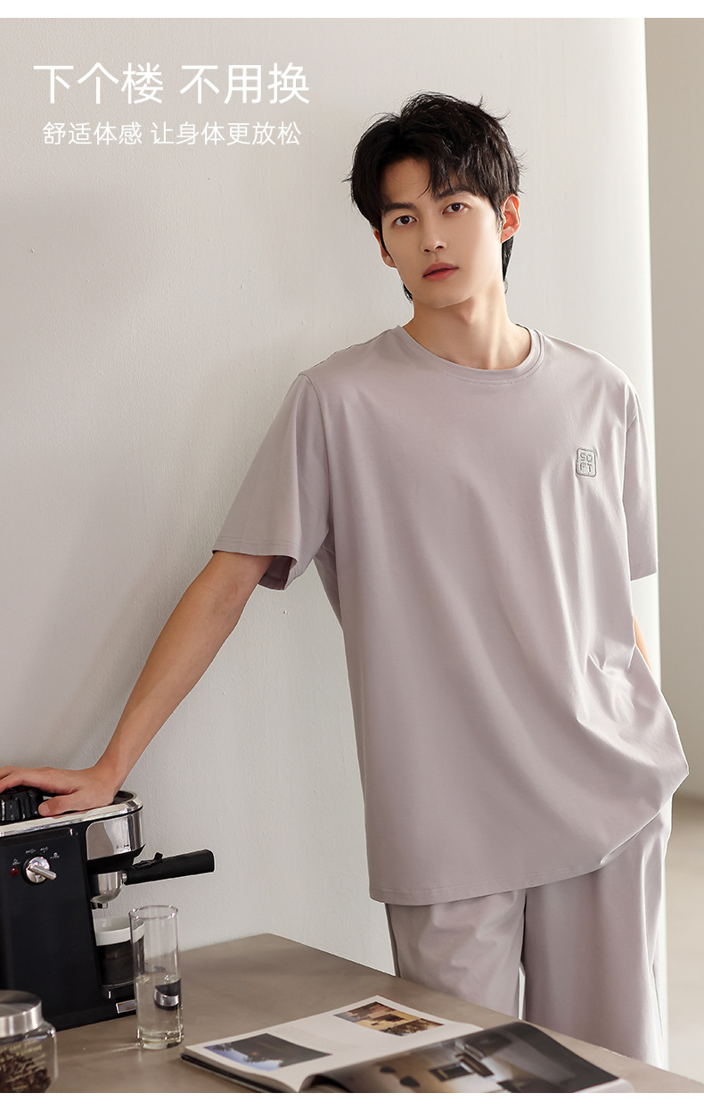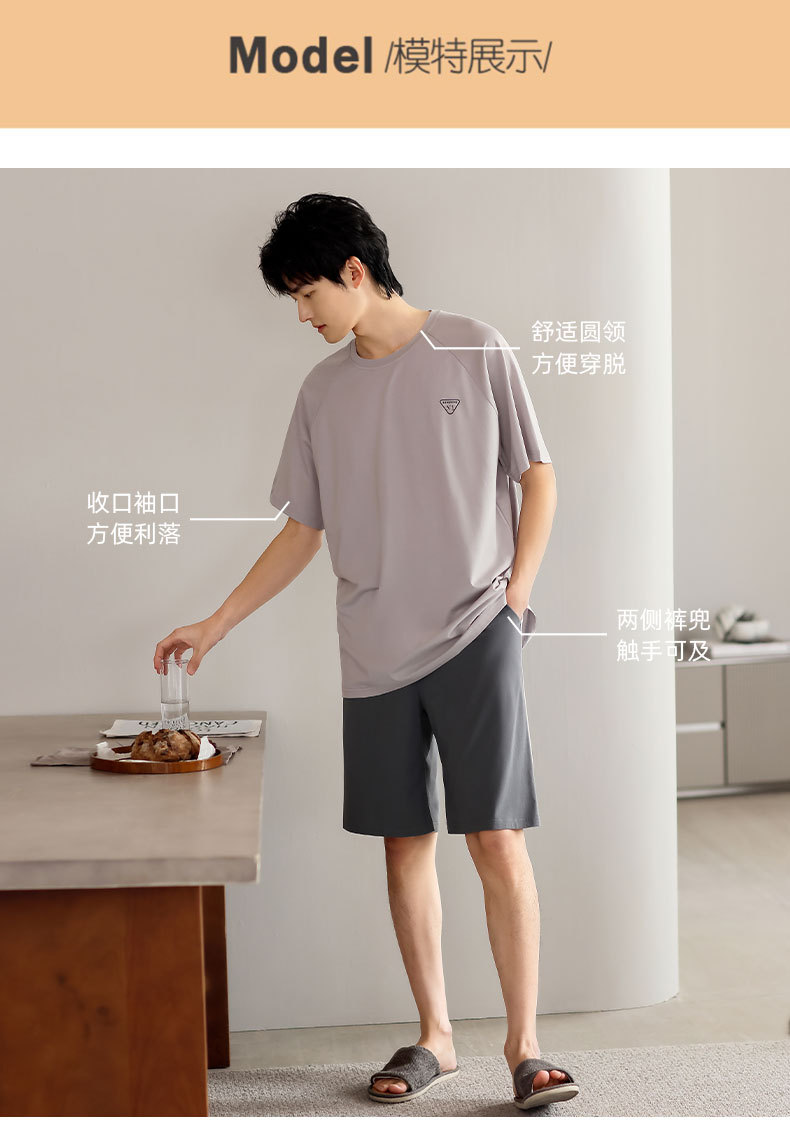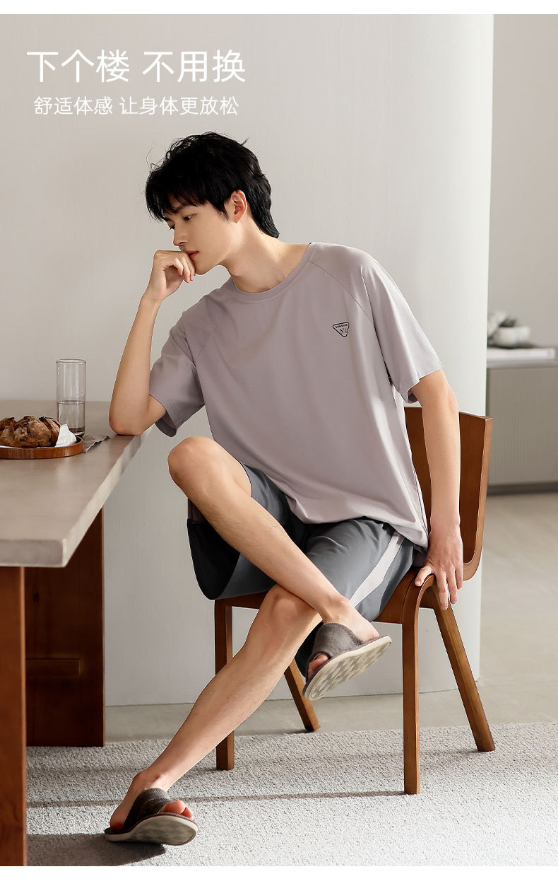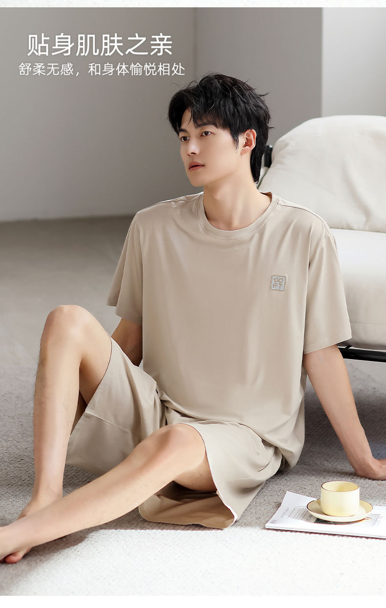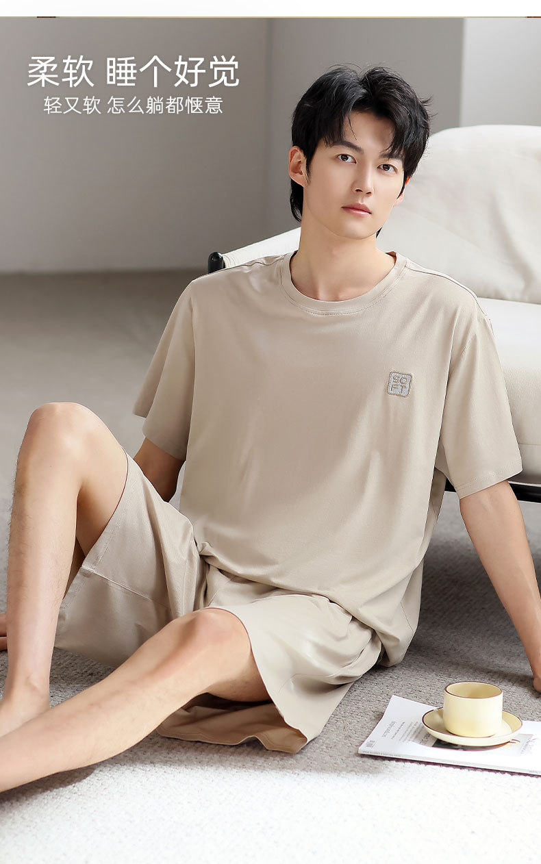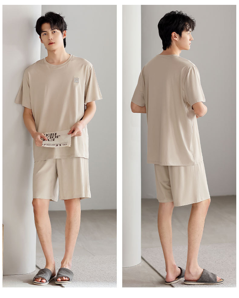 青少年パジャマ男性夏の薄い半袖半ズボン夏の涼感学生純色の大きいサイズの家庭服セット