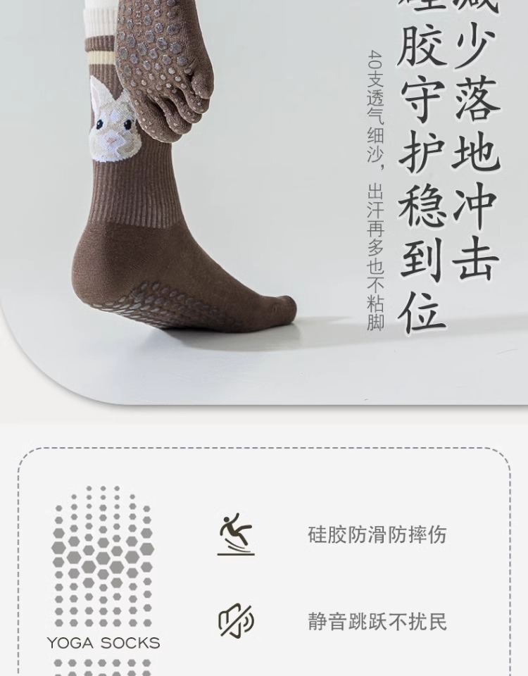 五指瑜伽袜长款女专业运动防滑秋冬中长筒分脚趾普拉提健身小腿袜