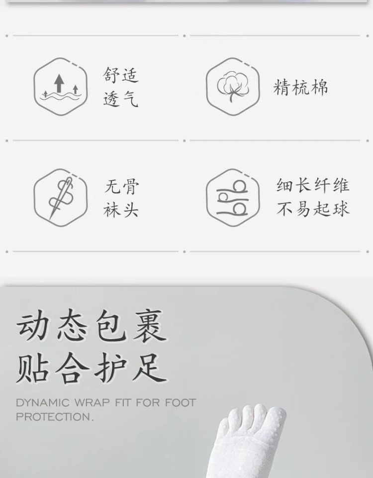 五指袜高橡筋专业瑜伽袜吸汗透气棉赋分趾袜普拉提防滑健身