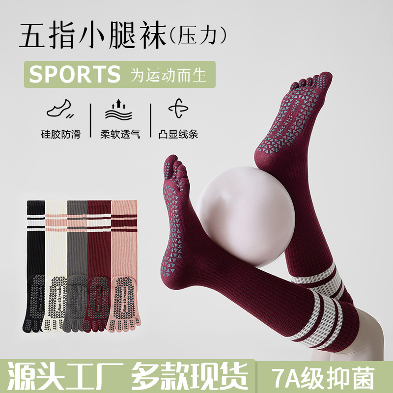 五指瑜伽袜子小腿防滑专业女跑步跳绳健身专用骑行压力运动长筒袜