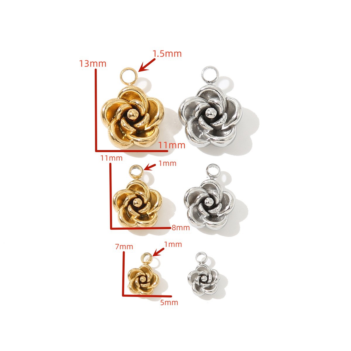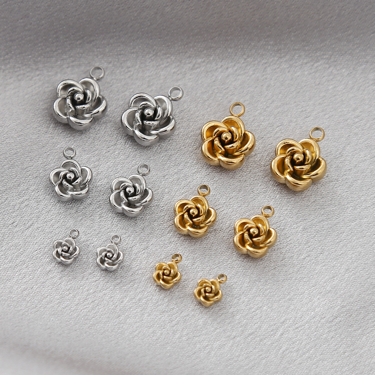 ステンレス3Dローズビーズ手作りピアスビーズアクセサリーブレスレットアクセサリーDIYネックレス卸売アクセサリー