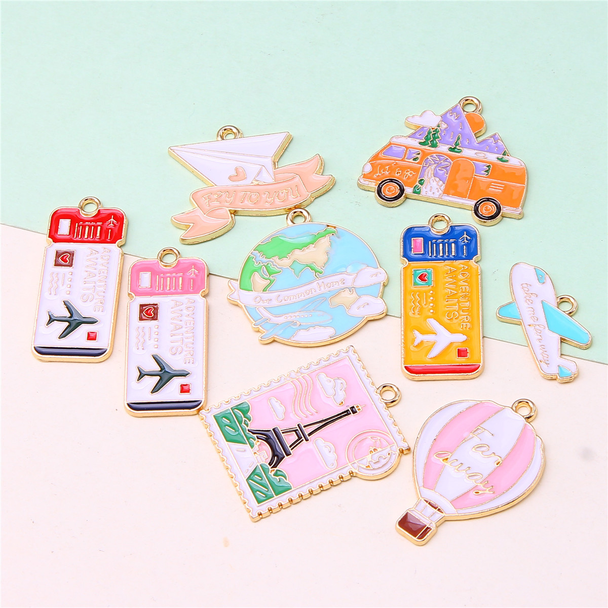 热气球月亮小车屋飞机合金滴油挂件 diy个性项链钥匙扣饰品配件
