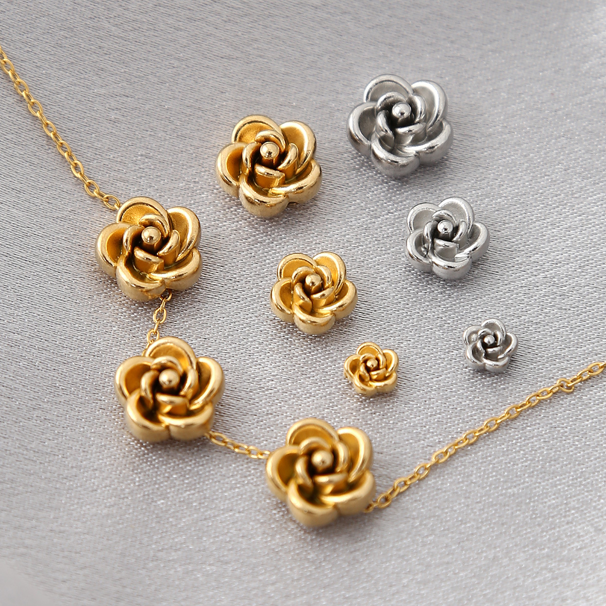 ステンレス3Dローズ花ペンダント手作りストラップ真空メッキブレスレットネックレスDIYネックレス卸売アクセサリー