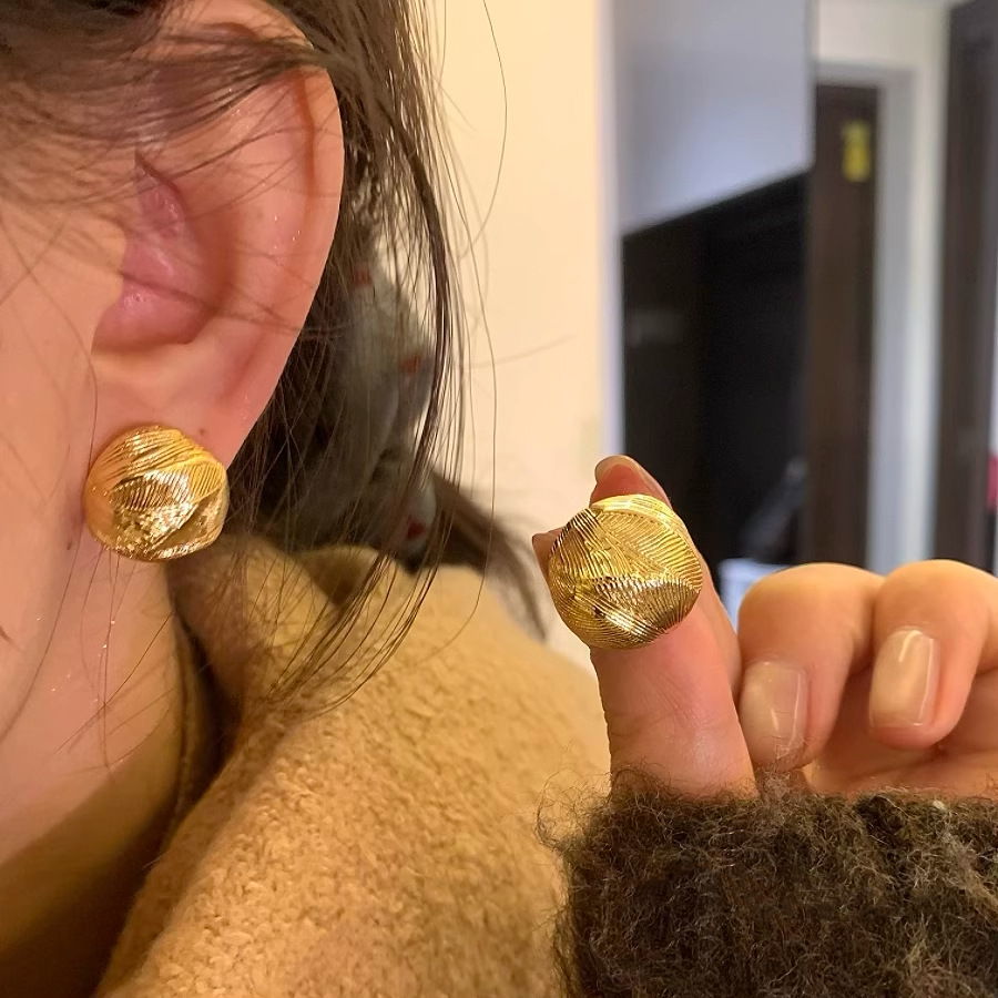 金属の木目のデザインの金色のピアスの冷たい風の円形の気質のイヤリングの欧米の2025の新型の冷感の耳飾り