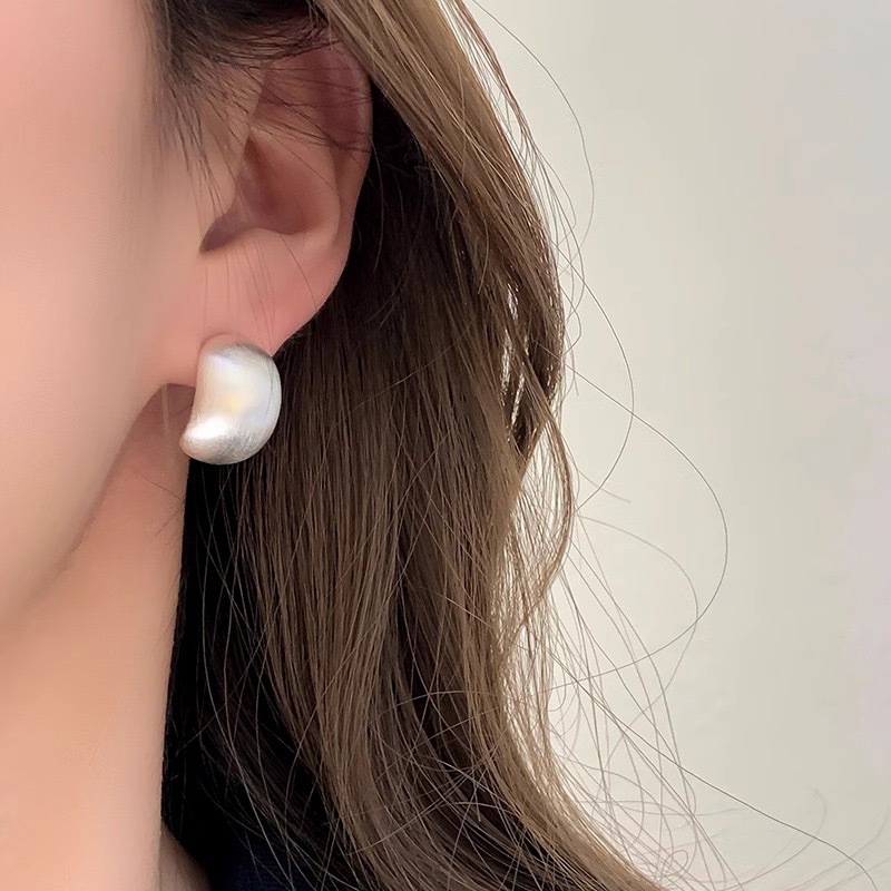 S925銀針甘いクールな金属のつや消しのシルクの質感の冷たい風感の豆のイヤリングの水滴のピアス
