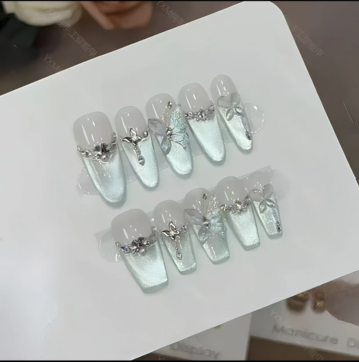 【白素珍】抖音で話題の純手作りネイルシール、繊細な猫目蝶々の高級ネイルパッチ、高級感